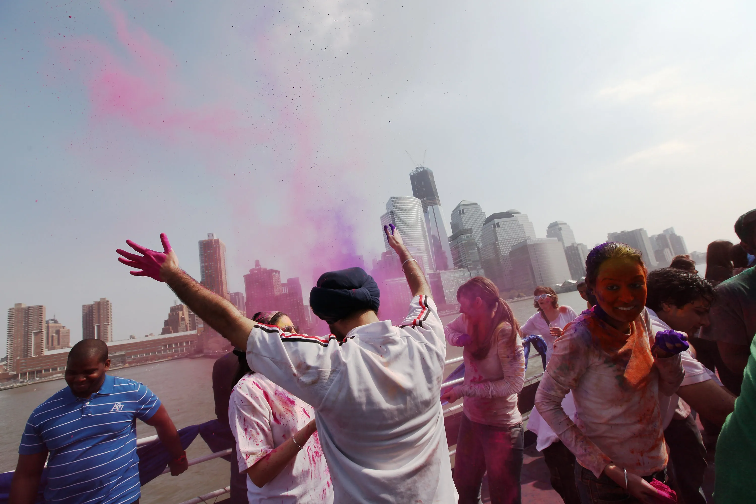 Indian Holi Festival Celebrated on Boat Cruise Around Manhattan