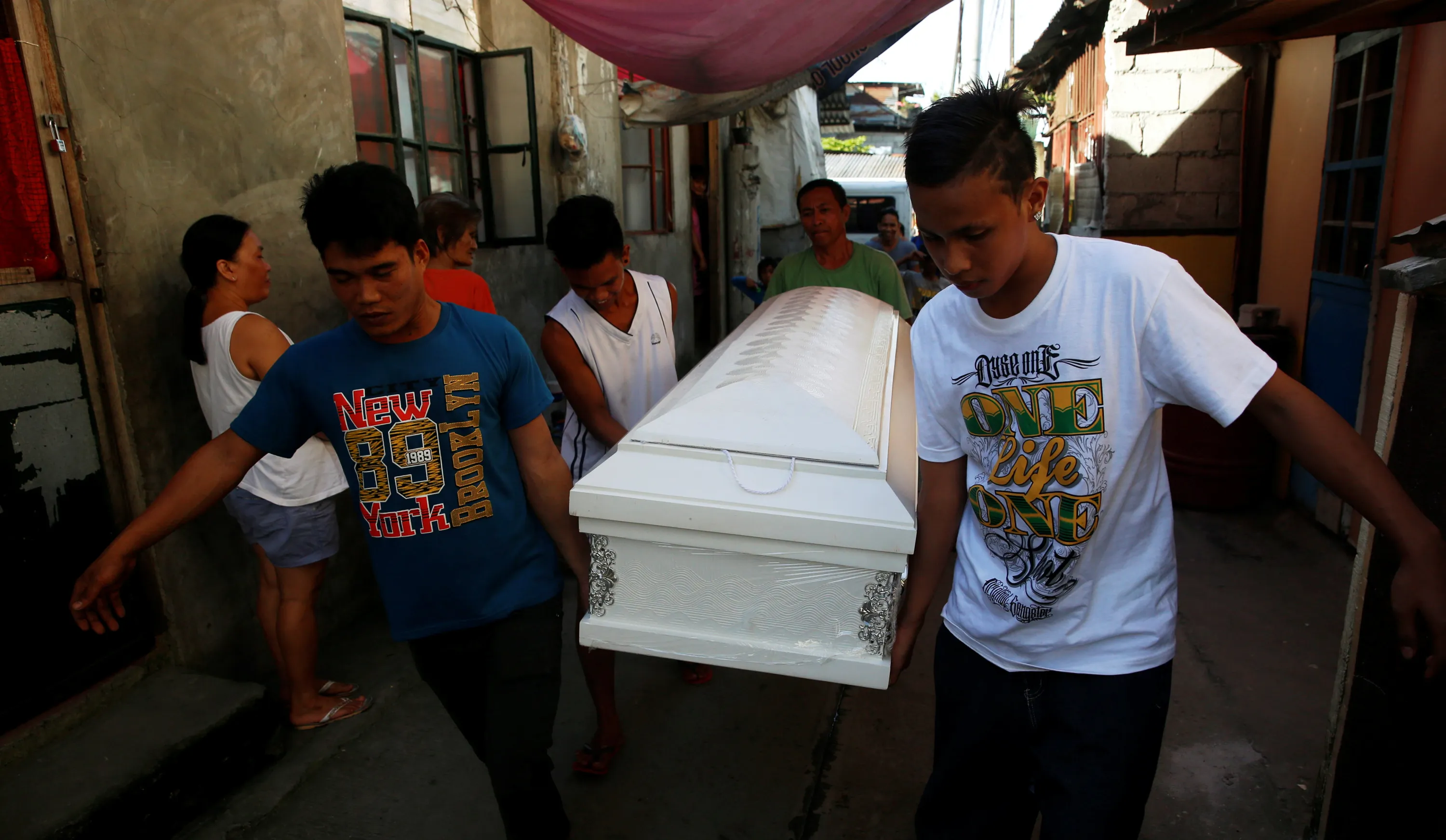 Friends carry the coffin of Kenneth Lim, 20, who was shot dead by suspected vigilantes at a house storing illegal narcotics, police said on Thursday, in Caloocan city, Metro Manila, in the Philippines December 29, 2016. (Photo by Erik De Castro/Reuters)