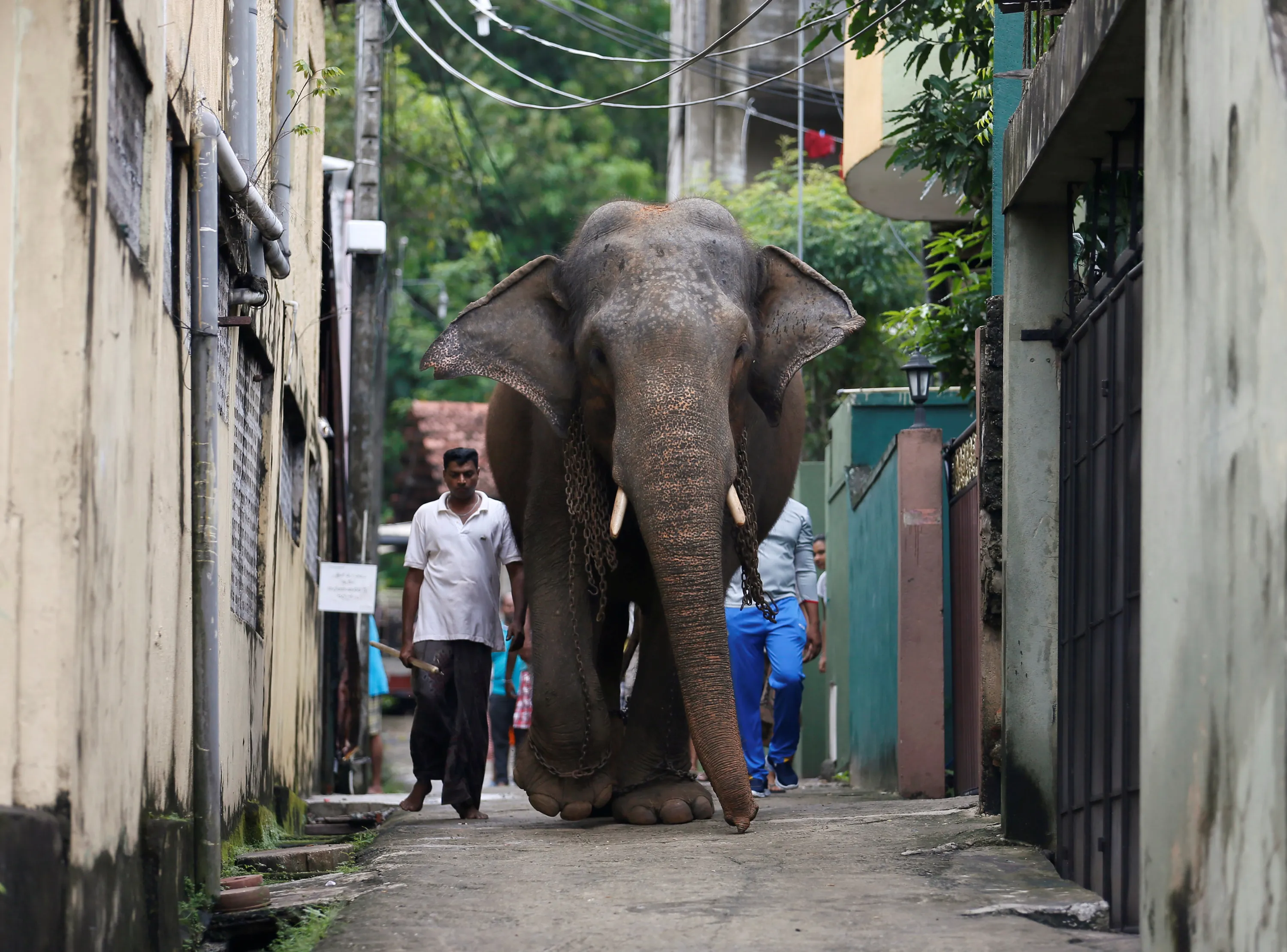 A mahout walks his elephant on a small road at a residential area in Colombo, Sri Lanka November 20, 2016. (Photo by Dinuka Liyanawatte/Reuters)