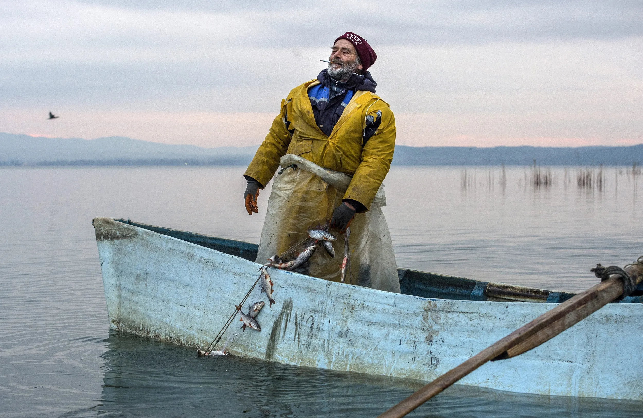 A fisherman pulls a fishing net from the Dojran lake, in Djordan, the former Yugoslav Republic of Macedonia, 04 January 2017. Dojran lake provides 90 percent of the fish that Macedonian orthodox believers eat during the Christmas fasting, especially on Christmas eve. 15 years ago the Dojran lake was on the verge of ecological disaster because it was running out of water and the flora and fauna in it was dying out, but a canal providing new streams of water was made and brought the lake back to life. The lake although small by surface, it is the main source of sweet water fish for Macedonia. (Photo by Georgi Licovski/EPA)