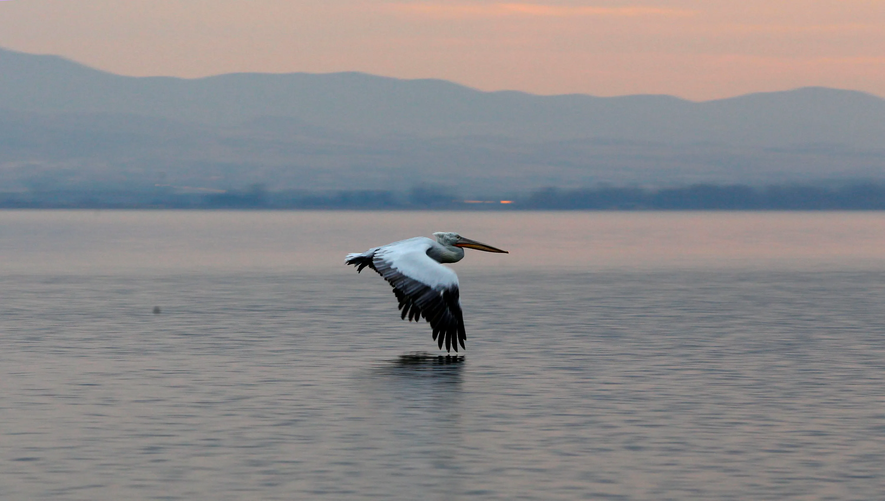 A pelican flies over Dojran Lake, Macedonia, January 4, 2017. (Photo by Ognen Teofilovski/Reuters)