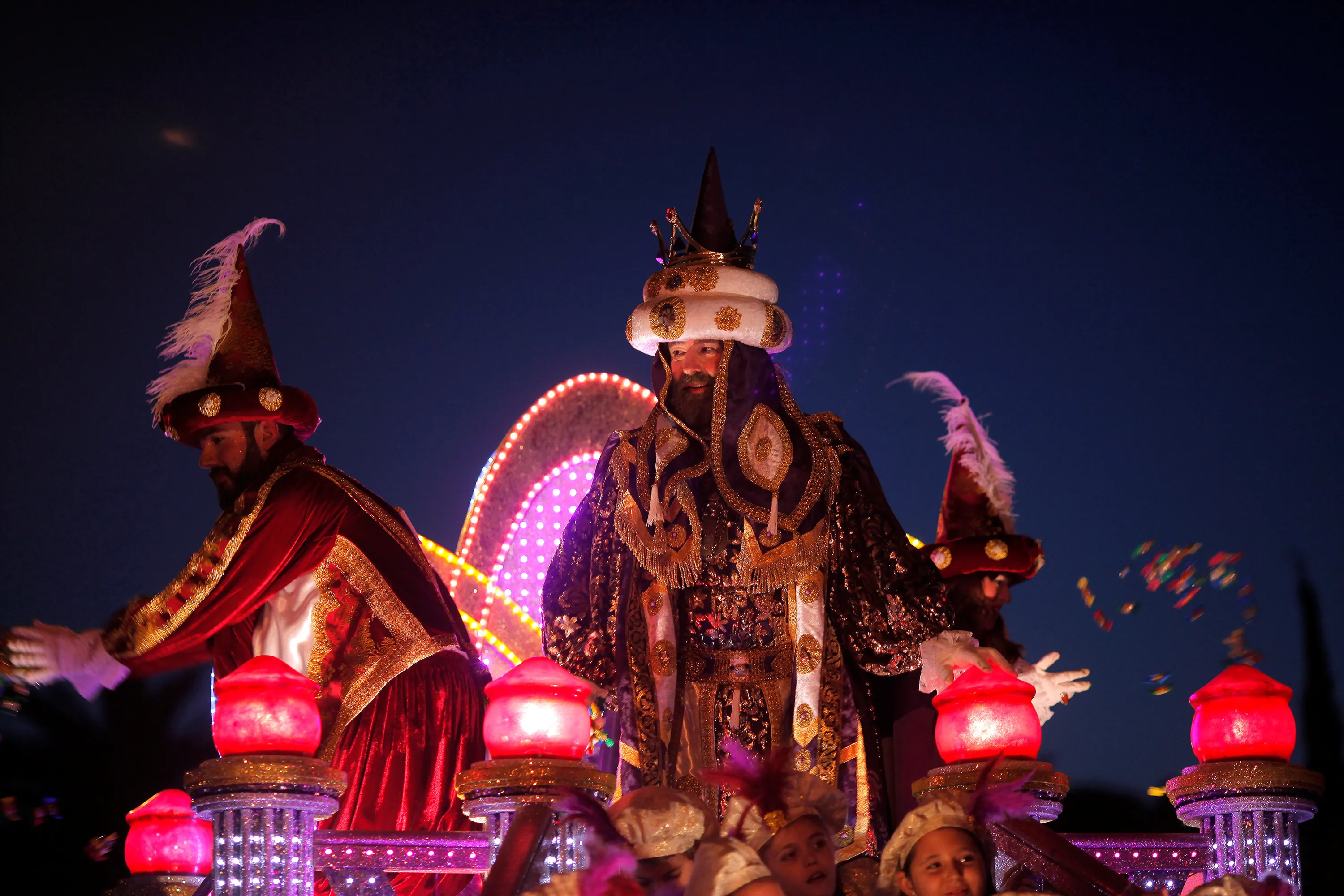 A man (C) dressed as Gaspar, one of the Three Wise Men, and his assistants throw sweets from a float during the traditional Epiphany parade in Malaga, southern Spain January 5, 2017. (Photo by Jon Nazca/Reuters)