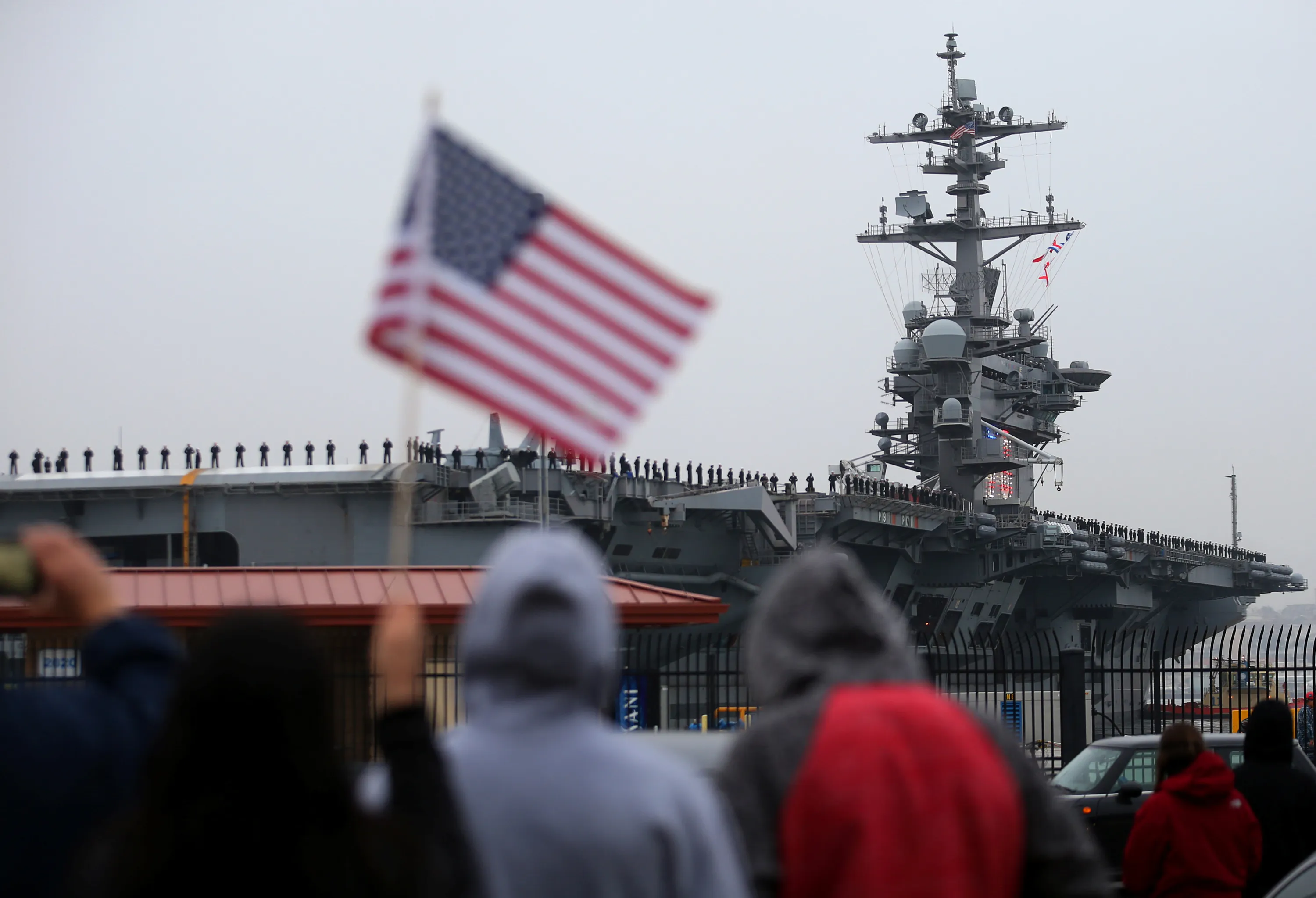 Family and friends watch as the USS Carl Vinson aircraft carrier departs on deployment from Naval Station North Island in Coronado, California, U.S. January 5, 2017. (Photo by Mike Blake/Reuters)