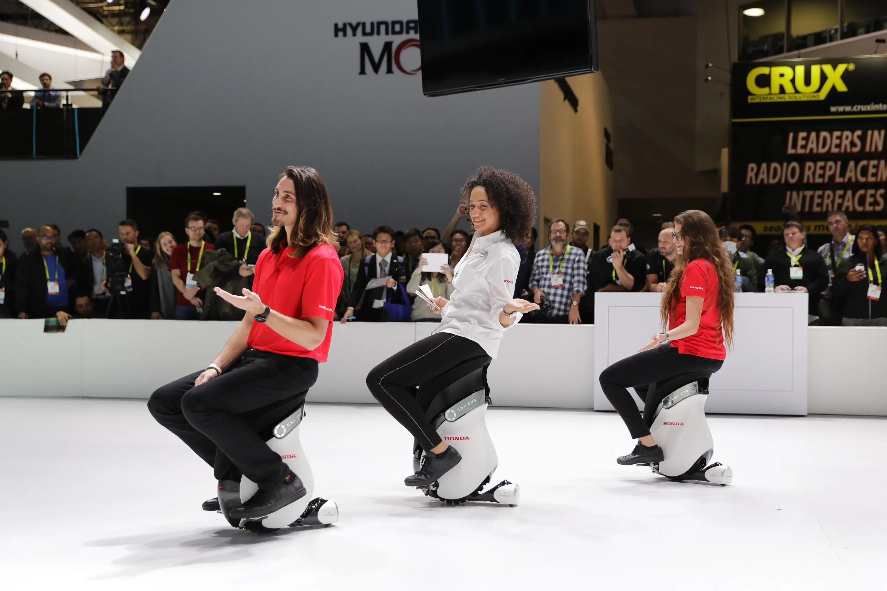 Models sit the Honda UNI-CUB electric scooters at CES International Thursday, January 5, 2017, in Las Vegas. (Photo by Jae C. Hong/AP Photo)
