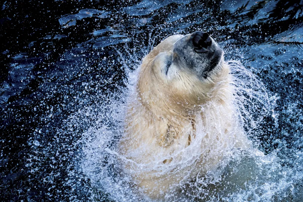 “Sprinter” the polar bear enjoys the water in a zoo in Hannover, Germany, Friday December 6, 2017. (Photo by Peter Steffen/DPA via AP)