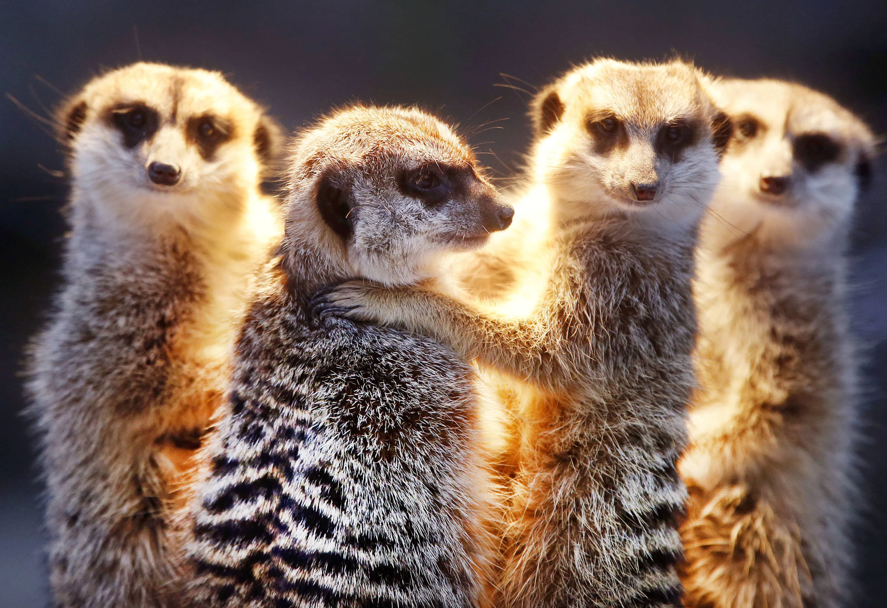 A meerkat father and his sons stand together in the Opel zoo in Kronberg near Frankfurt, Germany, Tuesday, January 3, 2017. (Photo by Michael Probst/AP Photo)