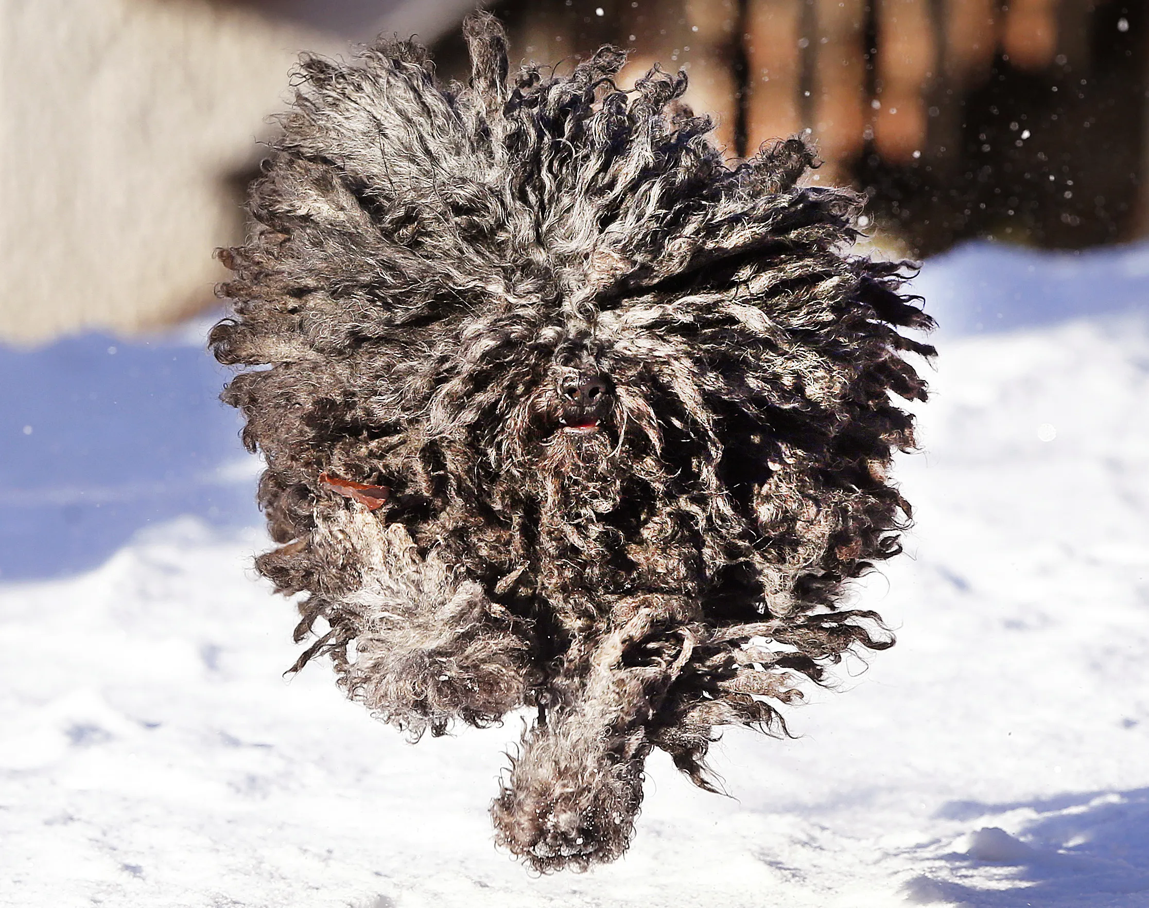 Puli Gin-Gin runs in the snow in its garden in Lautertal, southern Germany, Thursday, January 5, 2017. Pulis are Hungarian sheepdogs and rarely seen in Germany. (Photo by Michael Probst/AP Photo)