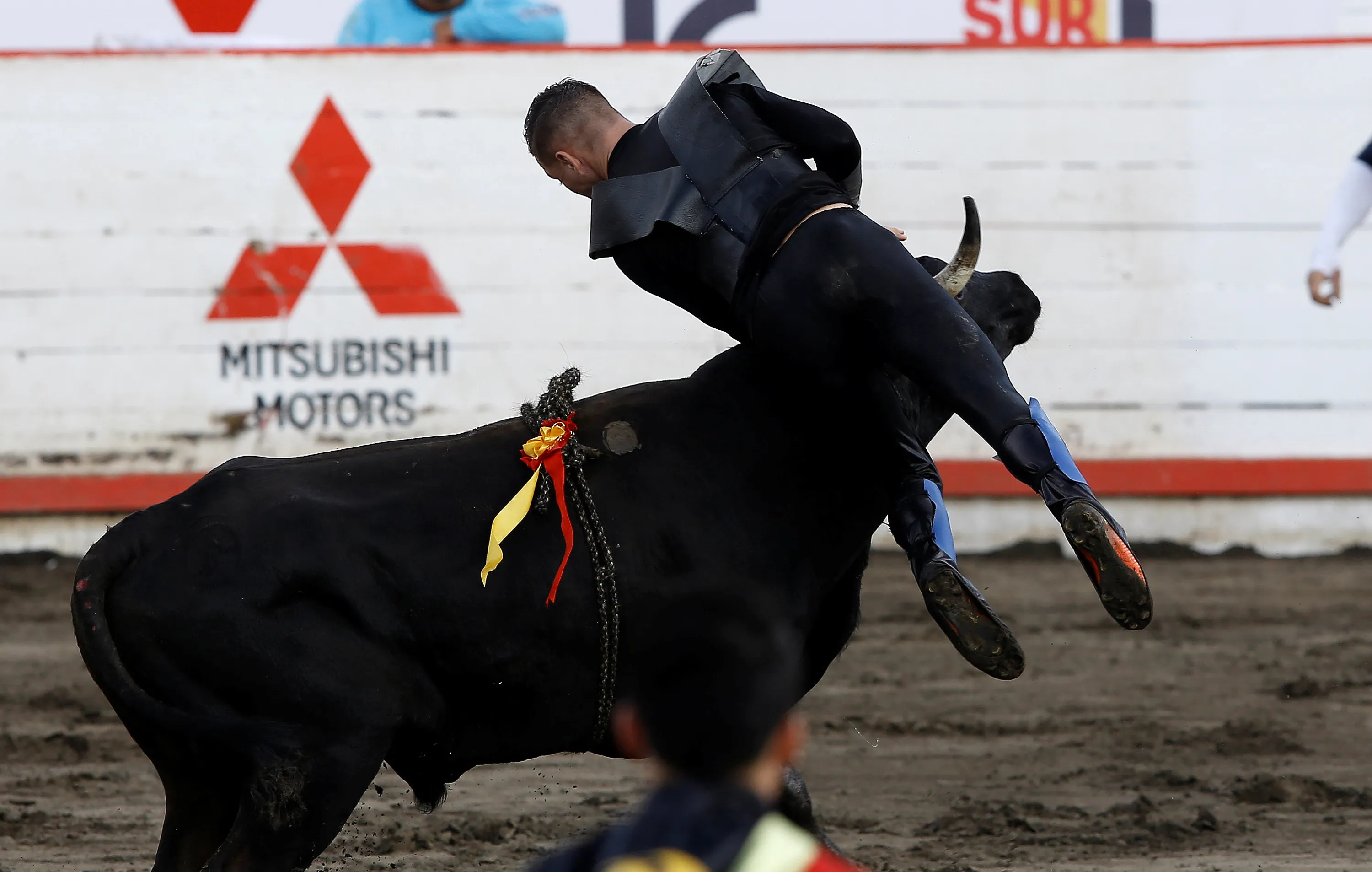 A bull tosses a participant up in the air during a traditional bullfighting festival called “Toros a la tica” in San Jose, Costa Rica January 6, 2017. (Photo by Juan Carlos Ulate/Reuters)