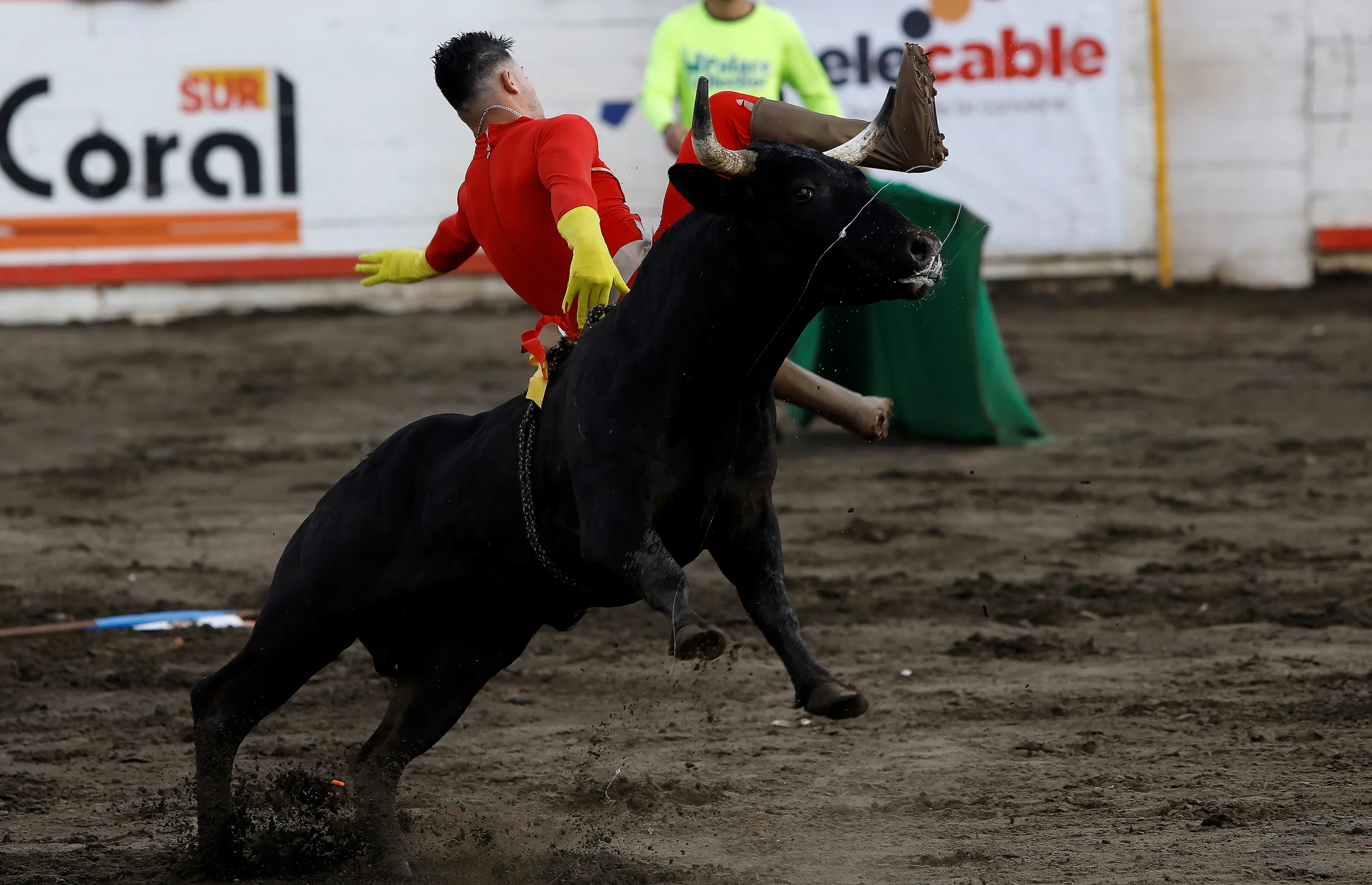 A bull tosses a participant up in the air during a traditional bullfighting festival called “Toros a la tica” in San Jose, Costa Rica January 6, 2017. (Photo by Juan Carlos Ulate/Reuters)