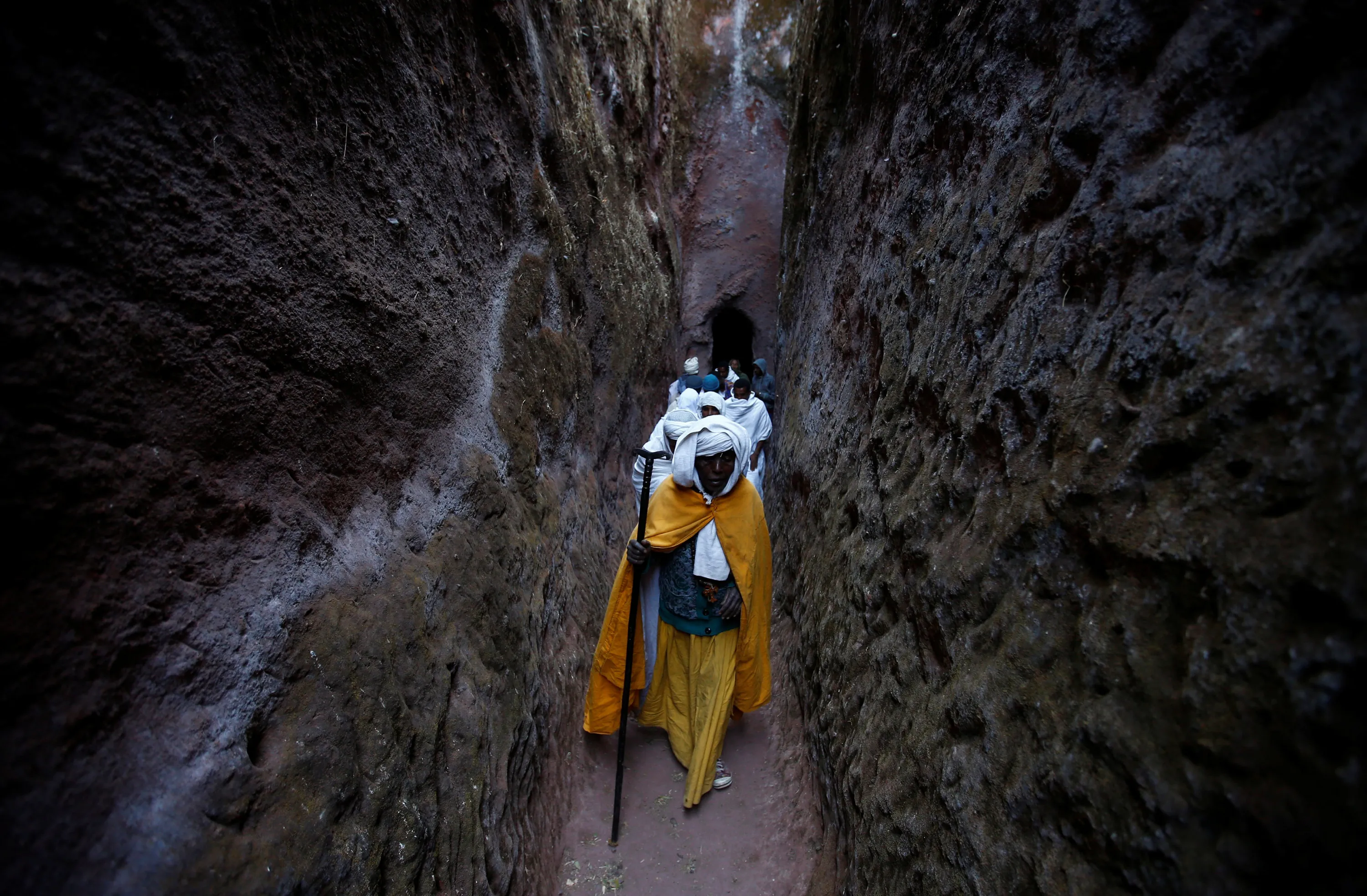An Ethiopian Orthodox monk walks within a rock hewn church ahead of Ethiopian Christmas in Lalibela, January 6, 2017, on the eve of Orthodox Christmas Day, which is celebrated on January 7. (Photo by Tiksa Negeri/Reuters)