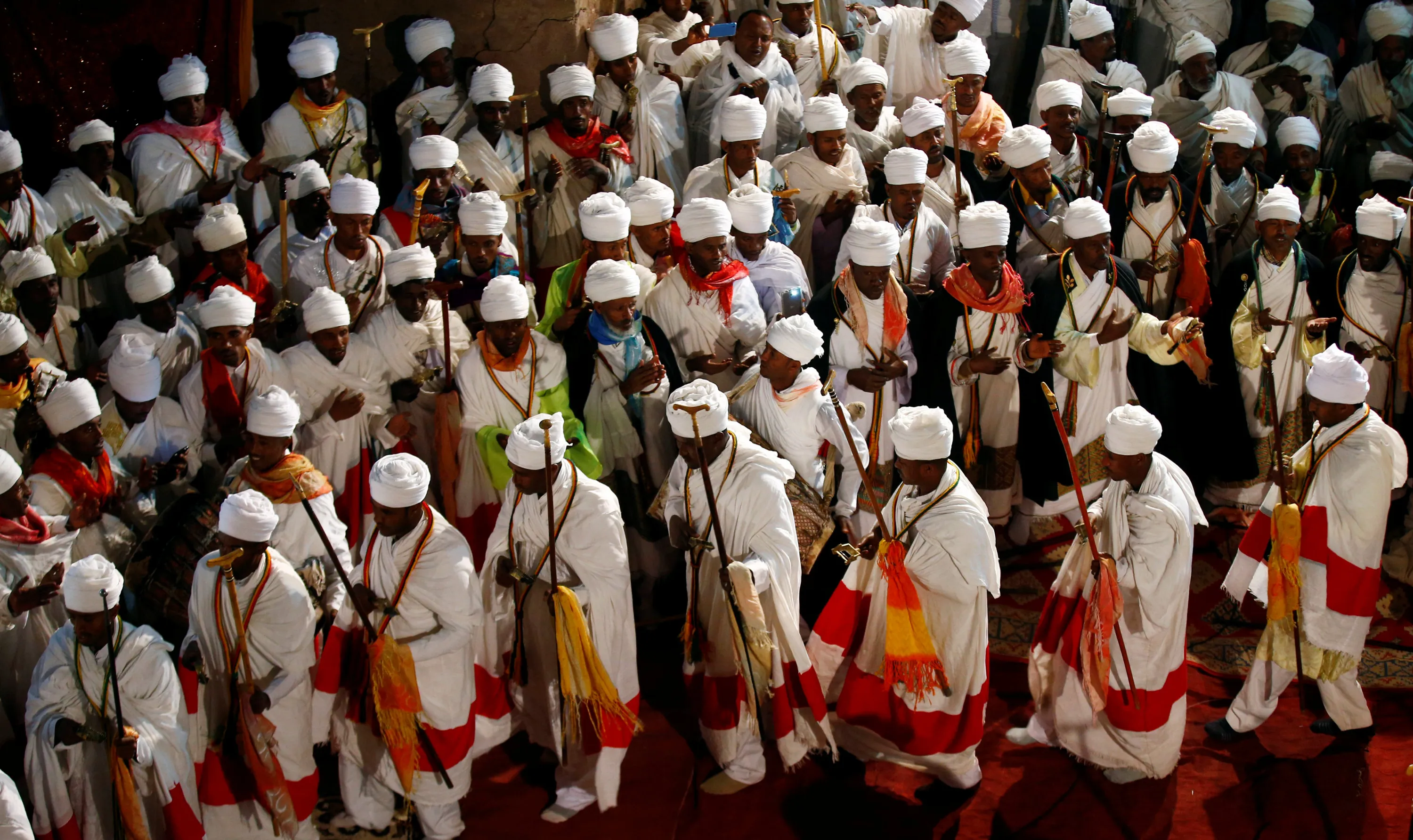 Ethiopian Orthodox choir members perform during the Ethiopian Christmas Eve celebration in Bete Maryam (House of Mary) monolithic church in Lalibela, Ethiopia January 6, 2017. Picture taken January 6, 2017. (Photo by Tiksa Negeri/Reuters)