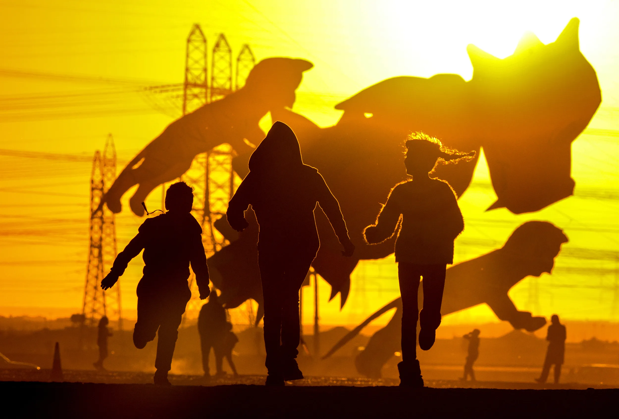 Kuwaitis play in front of kites at for Kuwaiti al-Farsi Kites team, Kuwaiti desert, 50 kilometers south of Kuwait City, 06 January 2017 (Issued 07 January 2017). (Photo by Raed Qutena/EPA)