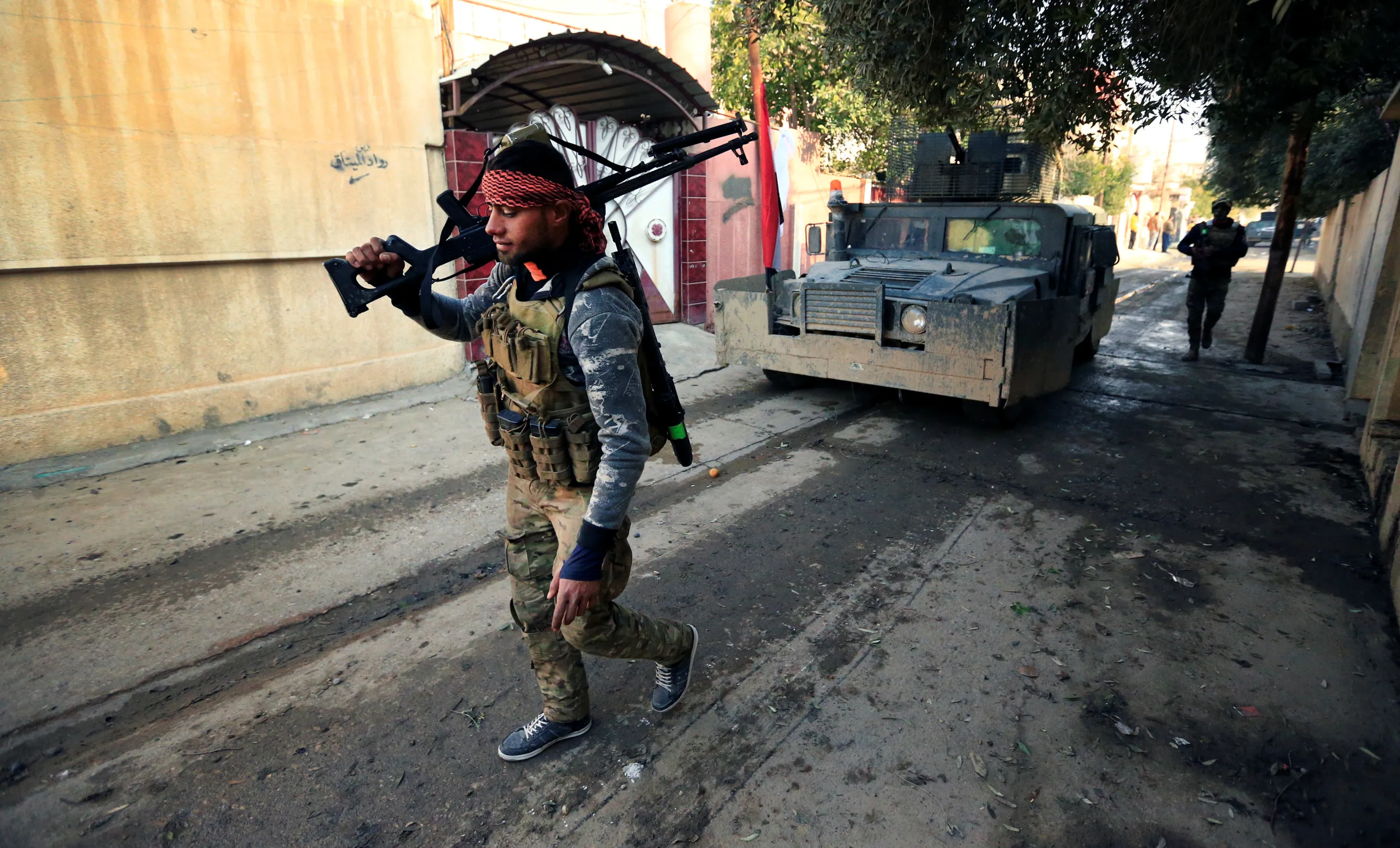 A member of Iraqi rapid response forces holds his weapon during battle with Islamic State militants in the Mithaq district of eastern Mosul, Iraq, January 4, 2017. (Photo by Thaier Al-Sudani/Reuters)