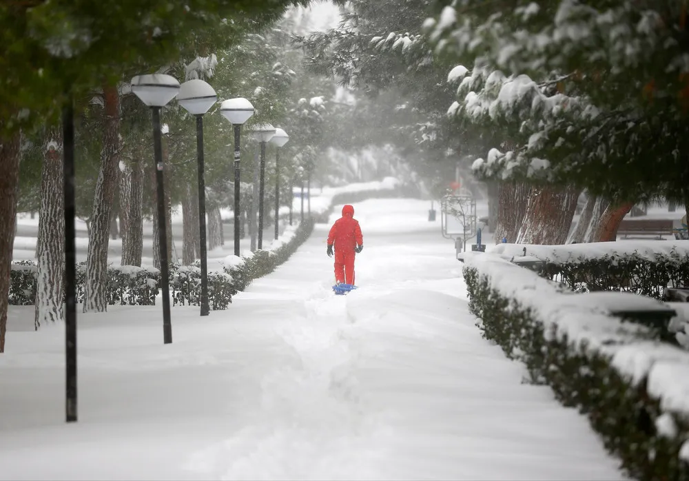 A boy walks under snow-covered trees during a snowfall in Istanbul, Turkey, January 7, 2017. (Photo by Osman Orsal/Reuters)