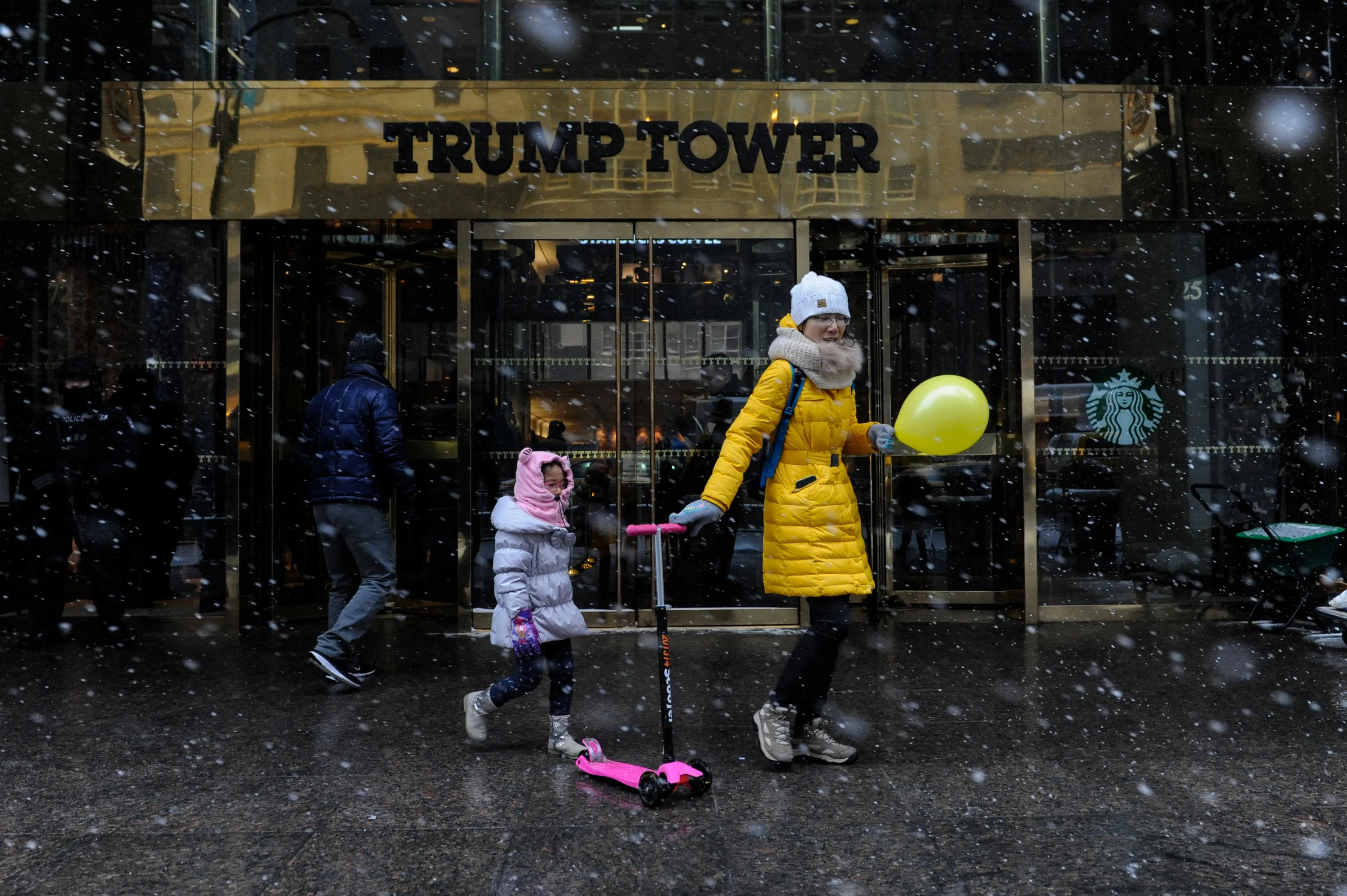 A woman and child exit Trump Tower during a snow storm in New York City, U.S. January 7, 2017. (Photo by Stephanie Keith/Reuters)