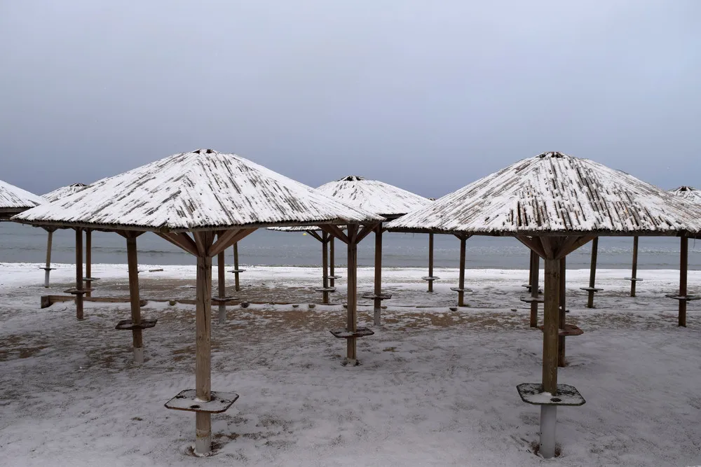 Beach umbrellas are covered with snow at the beach in the town of Artemida, Greece January 8, 2017. (Photo by Vassilis Triandafyllou/Reuters)
