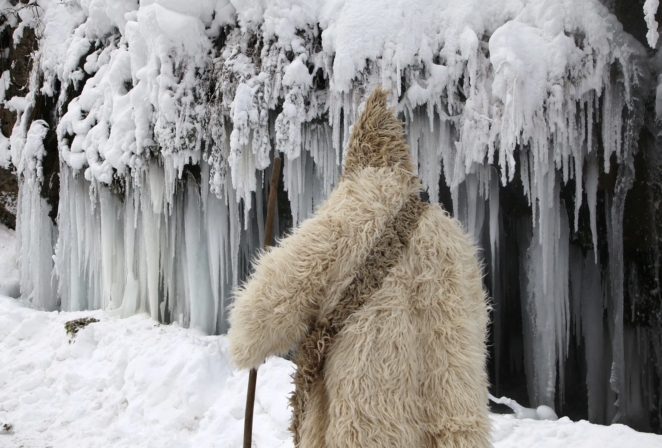 A man passes by a frozen waterfall at around minus 26 degrees Celsius (minus 14.8 degrees Fahrenheit) in the village of Jezerc, Kosovo January 8, 2017. (Photo by Hazir Reka/Reuters)