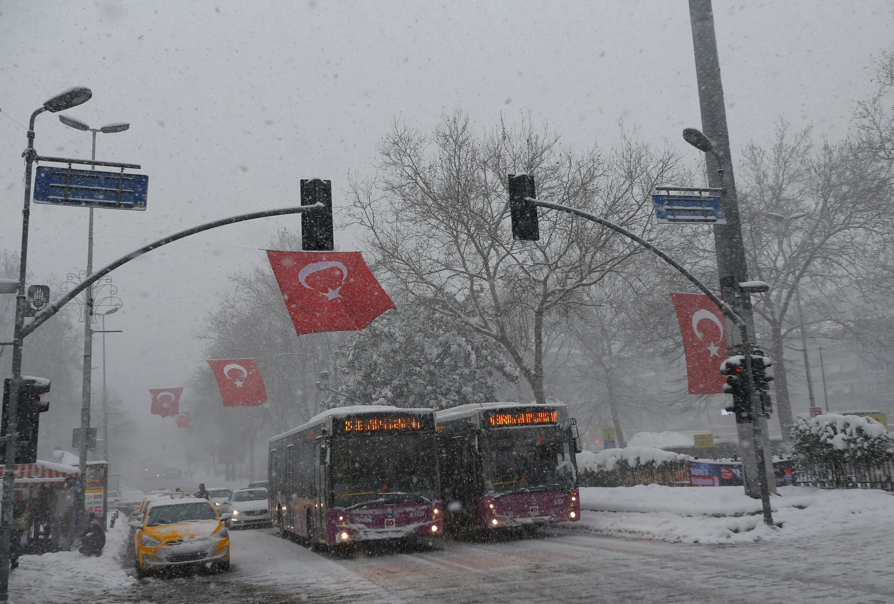 Vehicles wait for the greenlight of a traffic light during a snowfall in Istanbul, Turkey January 8, 2017. (Photo by Murad Sezer/Reuters)