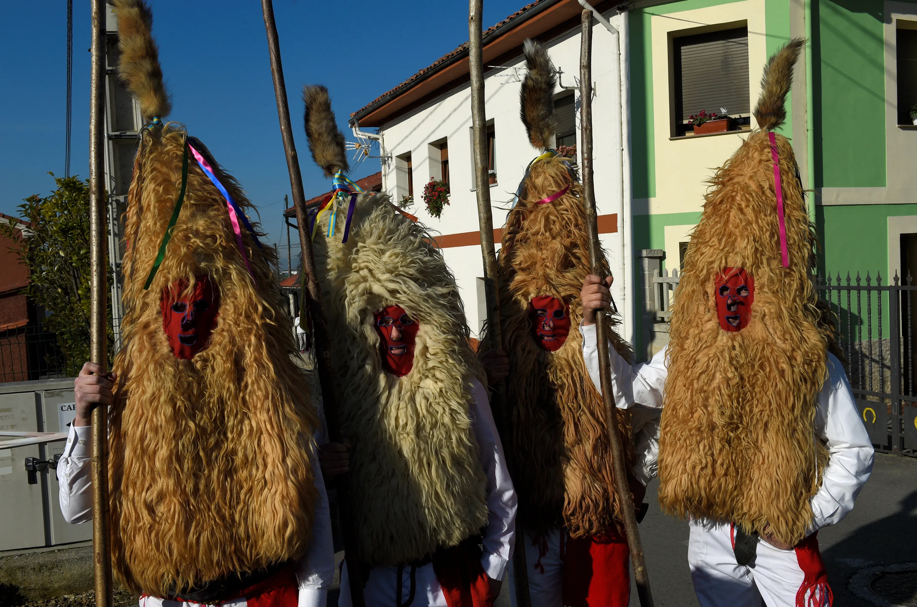 Villagers pose before performing in “Los Sidros y Las Comedias”, a traditional festival in Spain's northern village of Valdesoto, January 8, 2017. (Photo by Eloy Alonso/Reuters)