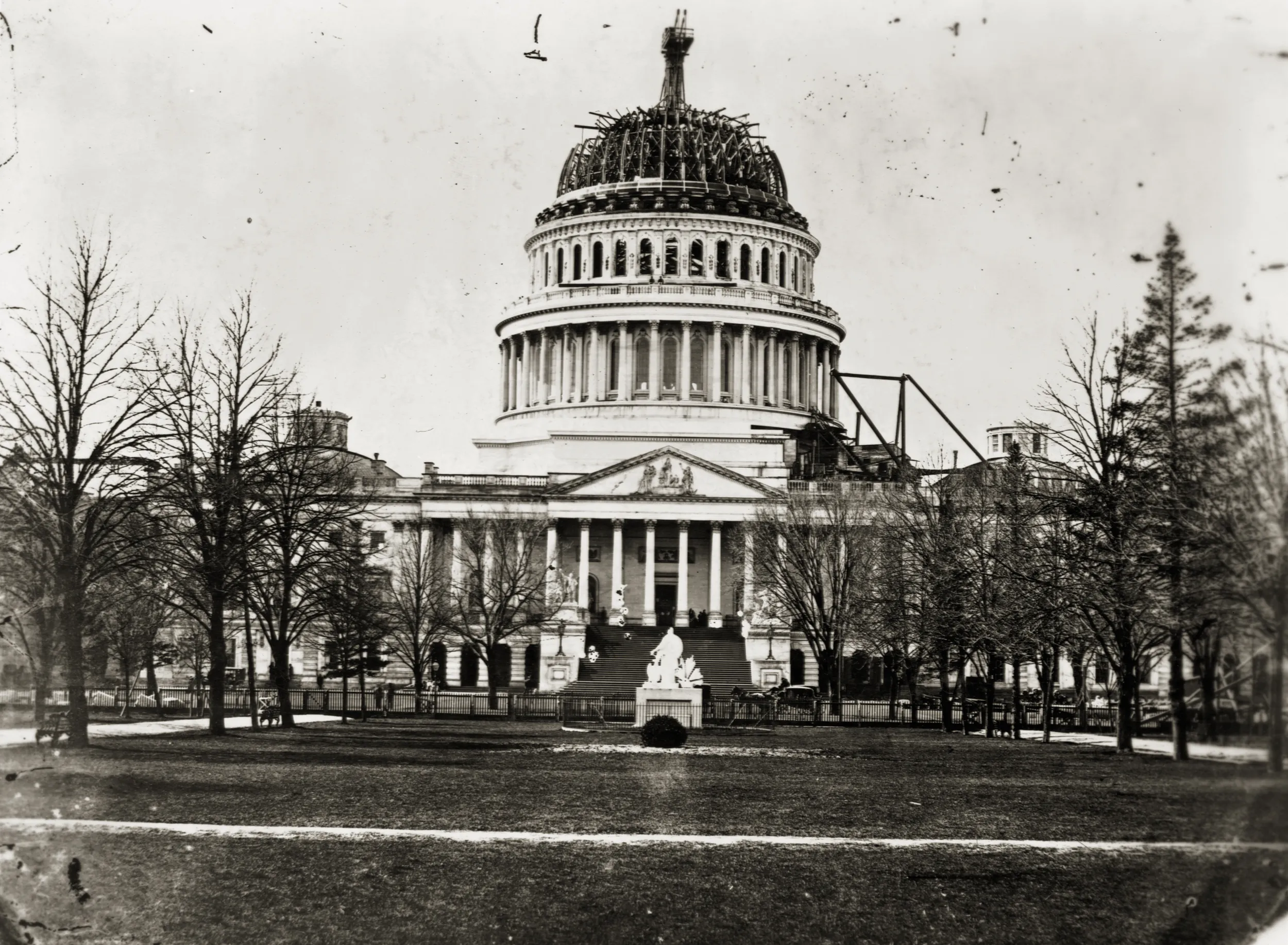 The U. S. Capitol, with its dome still uncompleted. Washington D. C., 1864. (Photo by Library of Congress/Corbis/VCG via Getty Images)