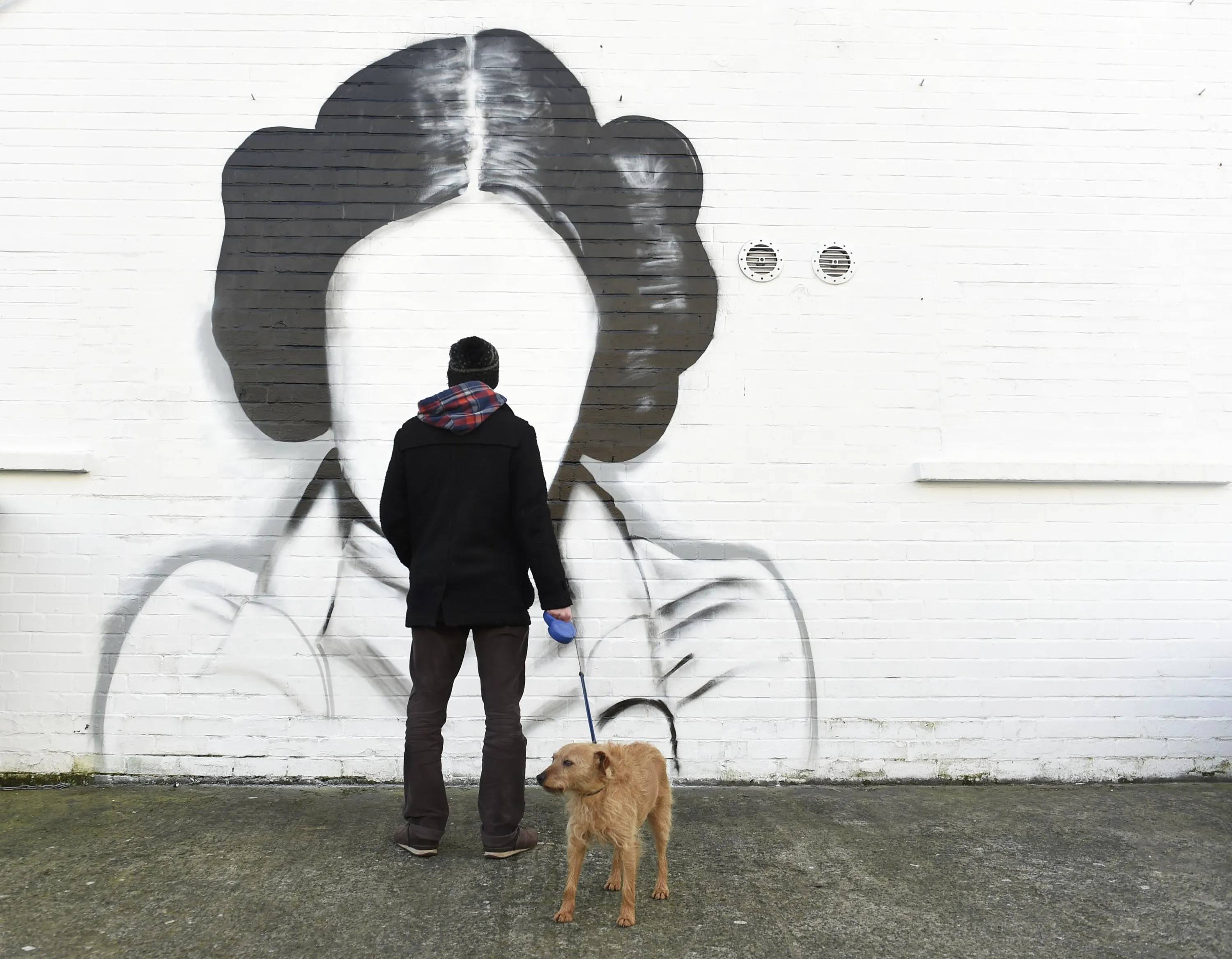 A man and his dog stop to look at a mural depicting Princess Leia from the film Star Wars played by Carrie Fisher in Belfast, Northern Ireland January 11, 2017. (Photo by Clodagh Kilcoyne/Reuters)