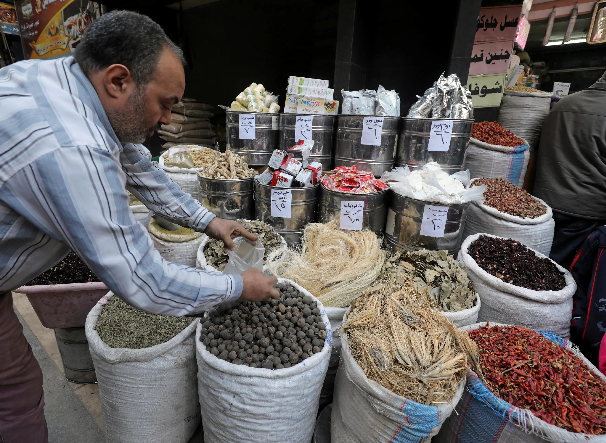 A herbal store worker takes ingredients to prepare a natural herbal drug in Cairo, Egypt January 10, 2017. (Photo by Mohamed Abd El Ghany/Reuters)