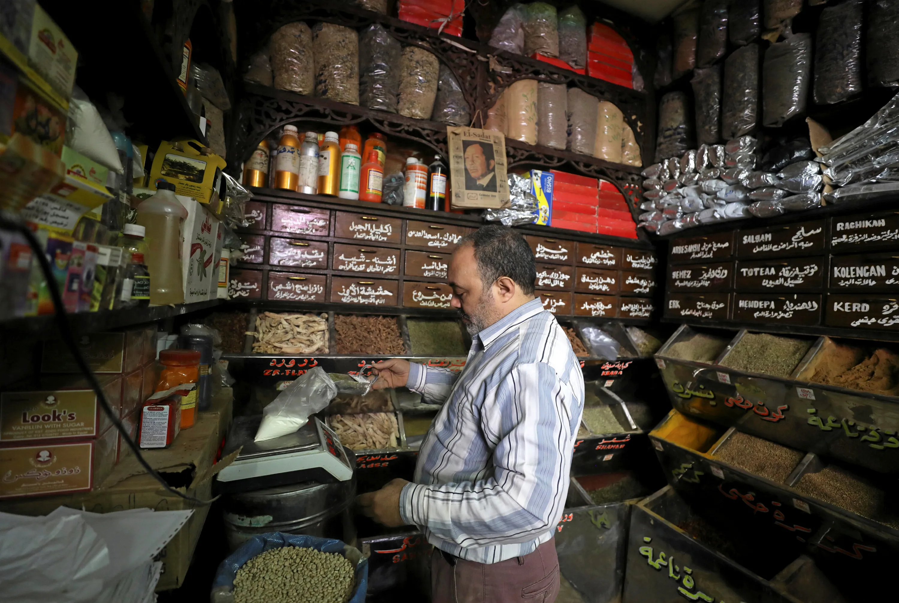 A worker at herbal store, takes ingredients to prepare natural herbal drug in Cairo, Egypt January 10, 2017. (Photo by Mohamed Abd El Ghany/Reuters)