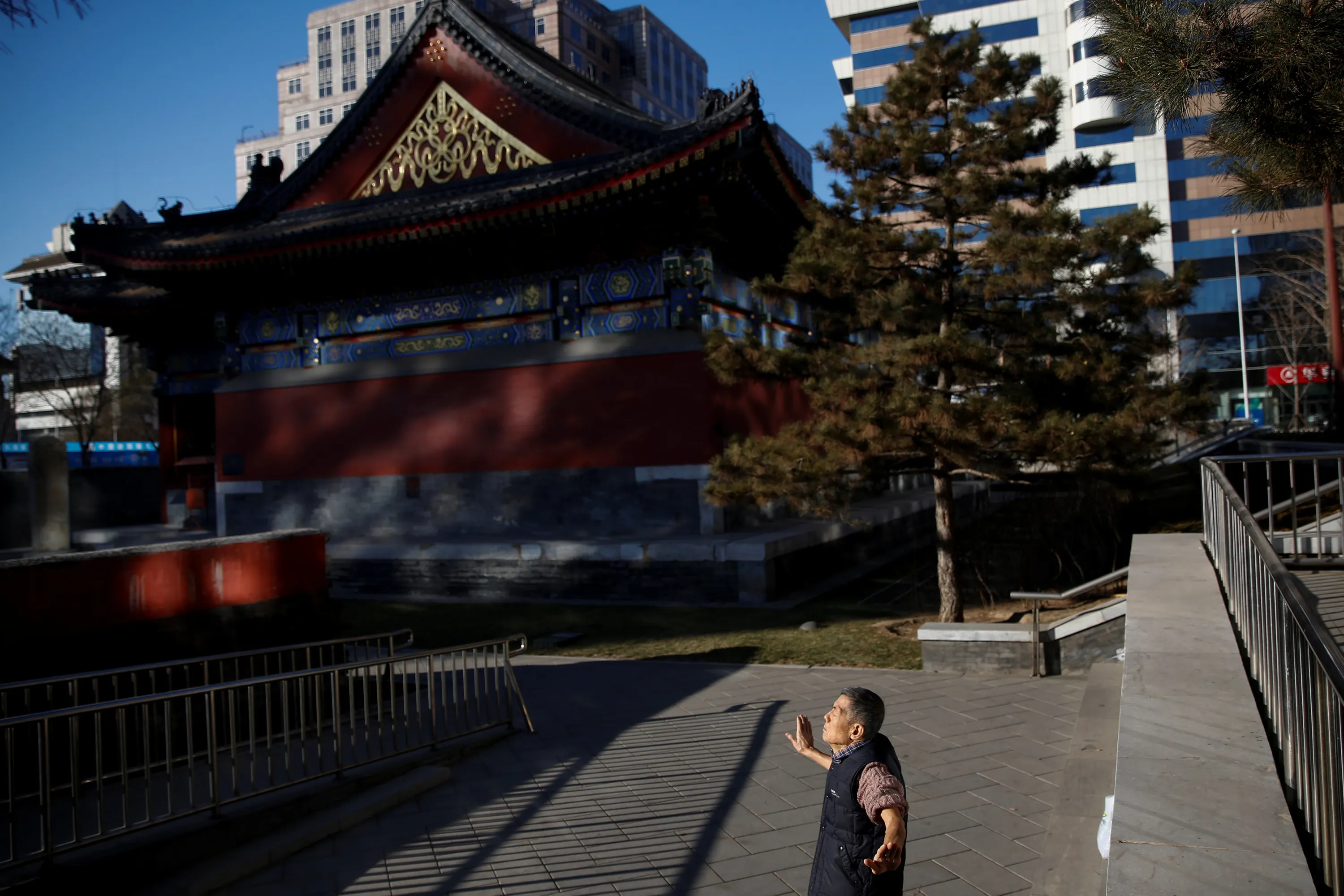 A man practices Tai Chi in a park on a sunny winter day in Beijing, China, January 2, 2017. (Photo by Thomas Peter/Reuters)