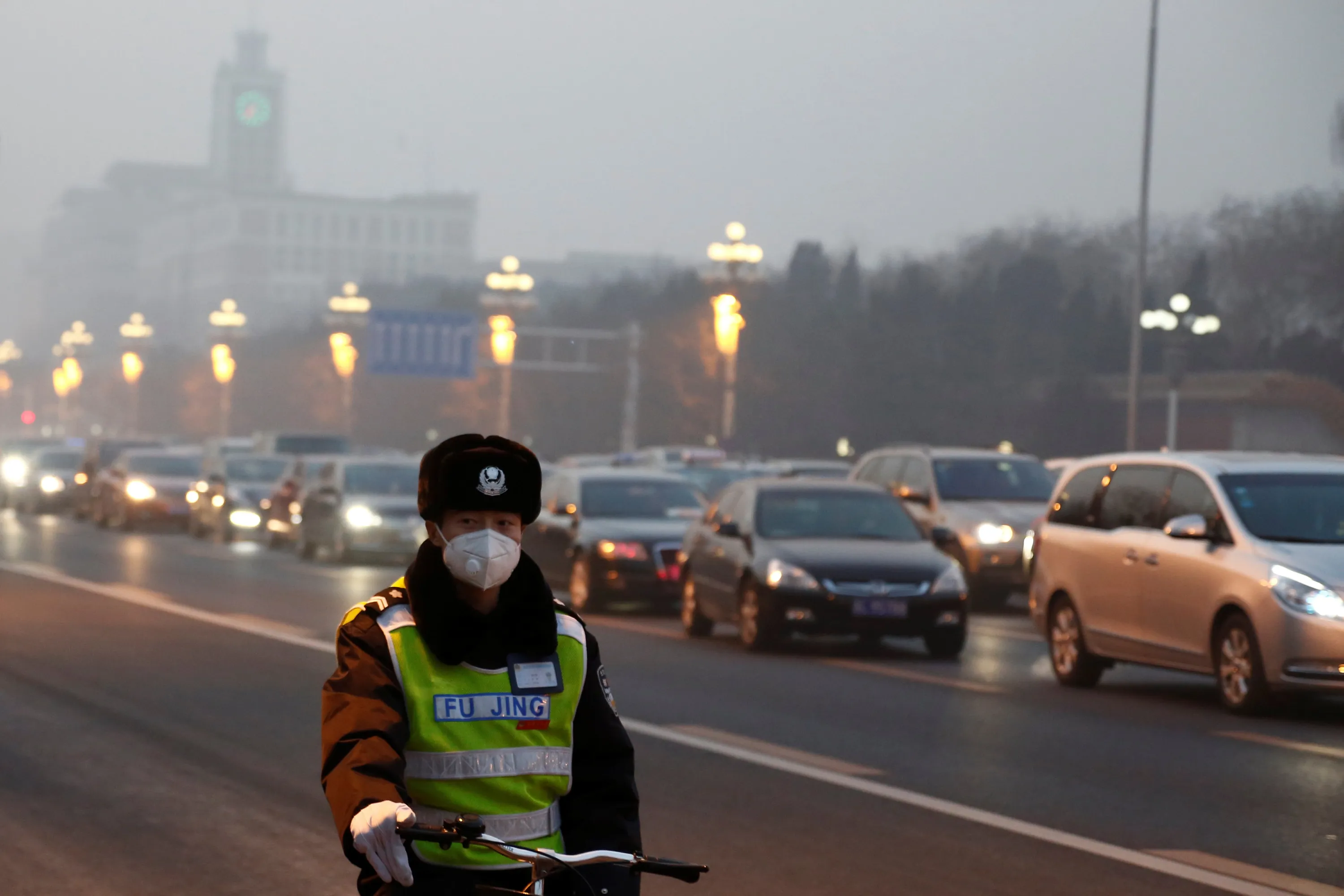 A police officer wears a face mask on a polluted day in Beijing, China, January 3, 2017. (Photo by Thomas Peter/Reuters)