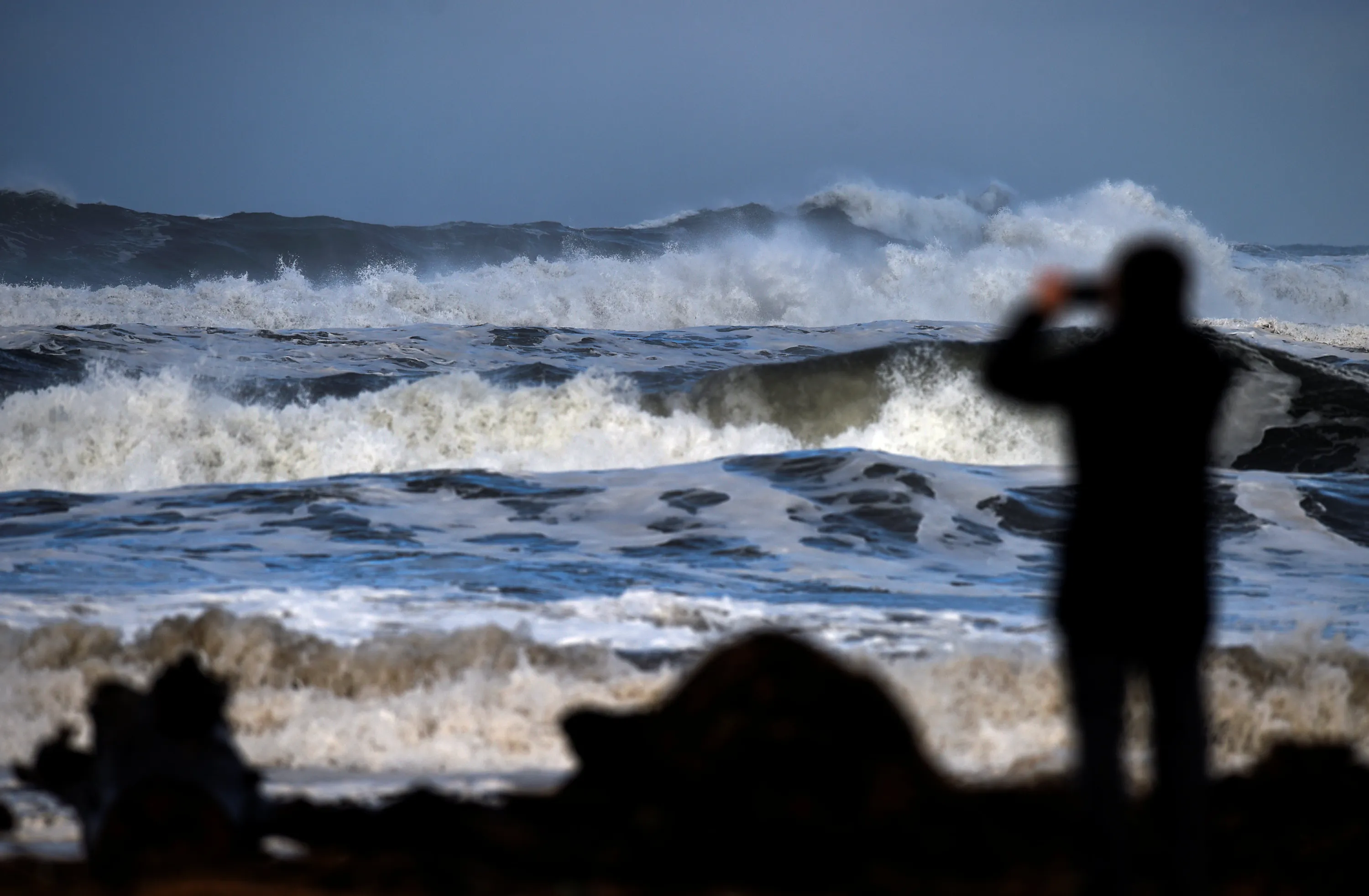 A woman looks at huge waves as they crash on Los Quebrantos beach in the northern Spanish village of San Juan de La Arena, Spain January 13, 2017. (Photo by Eloy Alonso/Reuters)