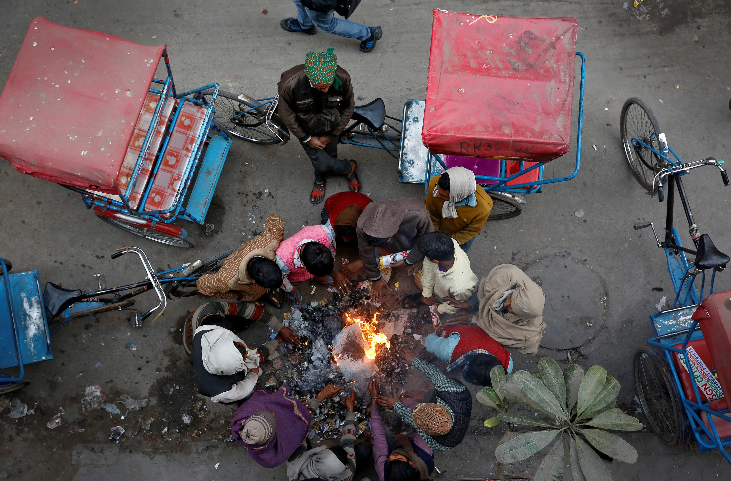 Rickshaw drivers heat themselves around a fire of burning garbage in Delhi, India January 11, 2017. (Photo by Cathal McNaughton/Reuters)