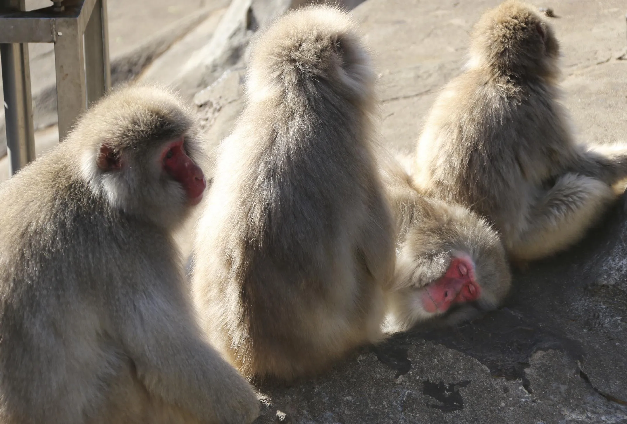 Macaques groom each other in the winter sunshine at Ueno Zoo in Tokyo, Saturday, January 7, 2017. The temperature of Tokyo's metropolitan area dropped to near zero degree Celsius (32 F) Saturday morning. (Photo by Koji Sasahara/AP Photo)
