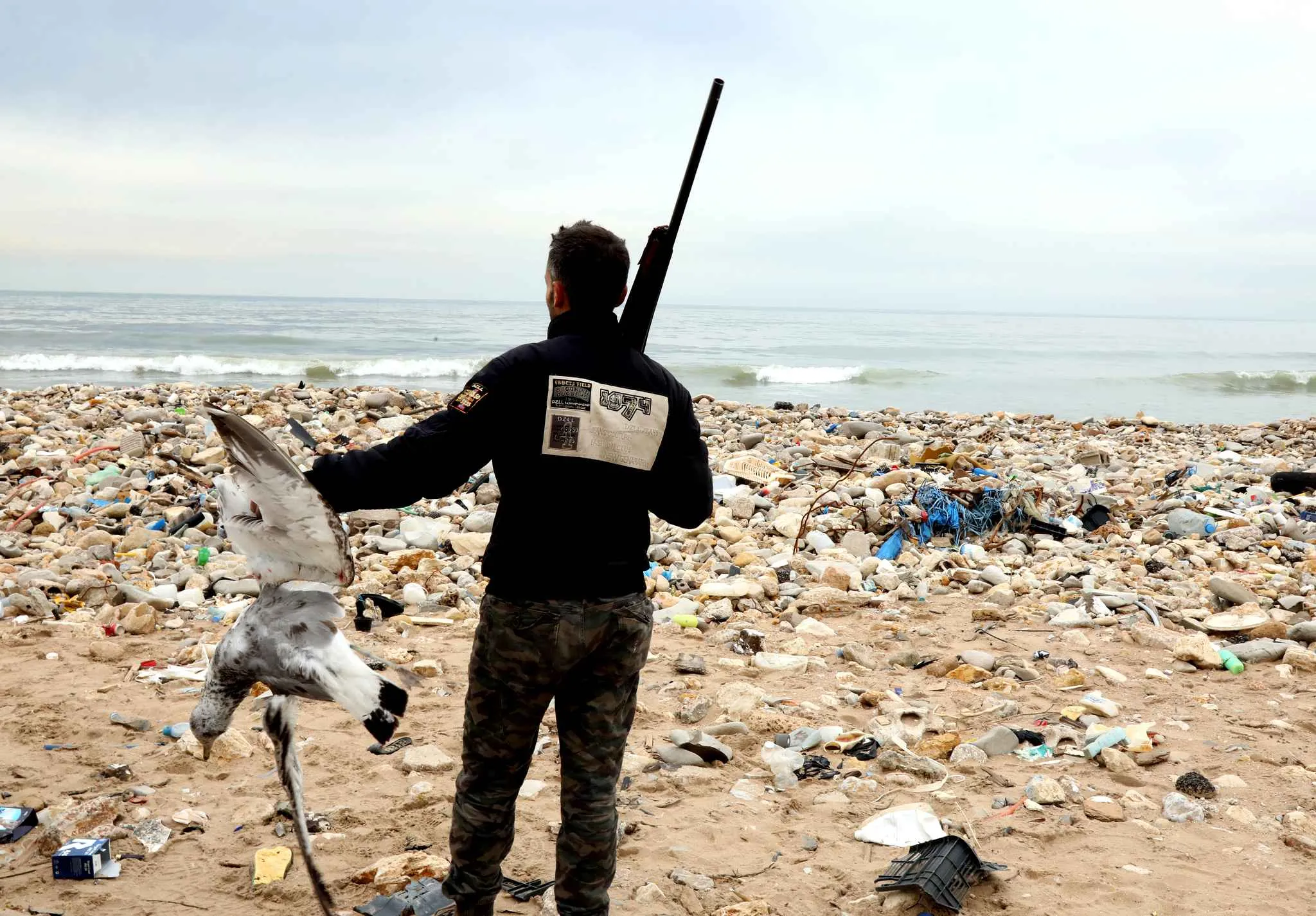 Hunters shoot down seagulls that are attracted by the garbage at the Costa Brava dump, on January 14, 2017 near Beirut' s International Airport Costa Brava was opened in March last year as one of three “temporary” tips intended to provide an interim solution after the closure of the main landfill receiving waste from Beirut The dumps were eventually intended to have waste processing facilities, but that has not happened As a result, garbage has piled up in Costa Brava, on the coastline close to the airport runways, reaching nine metres (30 feet) in some places. (Photo by Anwar Amro/AFP Photo)