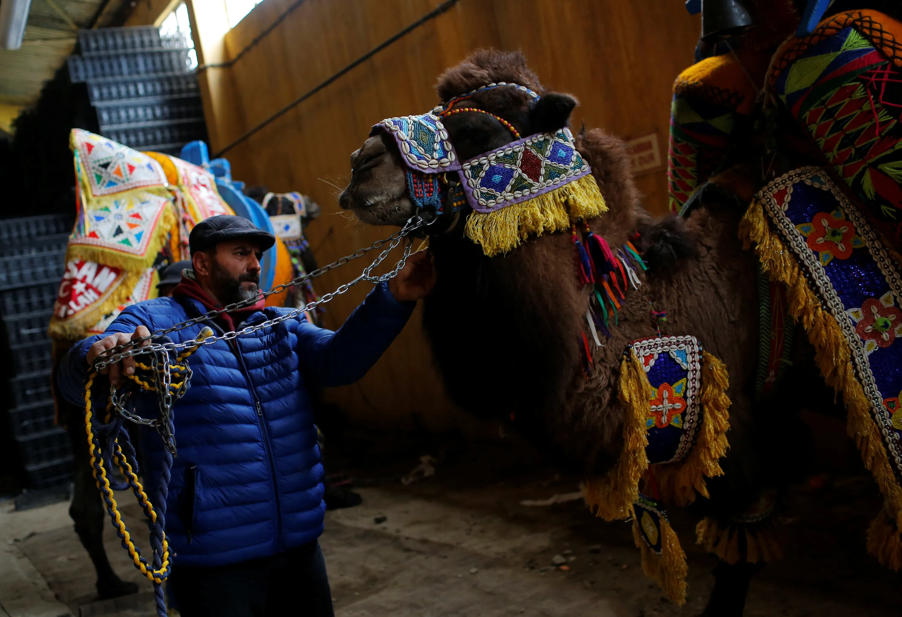 Wrestling camel “Crazy Hasan” is adorned by his owner for the Camel Beauty Contest ahead of the annual Selcuk-Efes Camel Wrestling Festival in the Aegean town of Selcuk, near Izmir, Turkey, January 14, 2017. (Photo by Murad Sezer/Reuters)