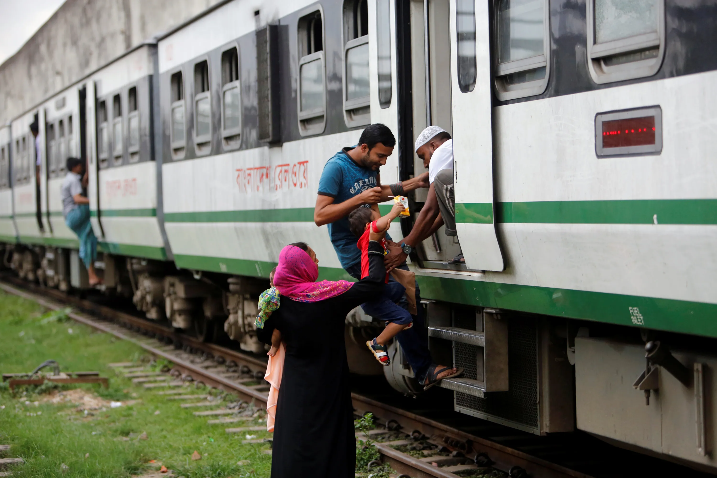 Men help a child to board the train at Kamalapur Railway Station in Dhaka, Bangladesh, August 7, 2016. (Photo by Mohammad Ponir Hossain/Reuters)