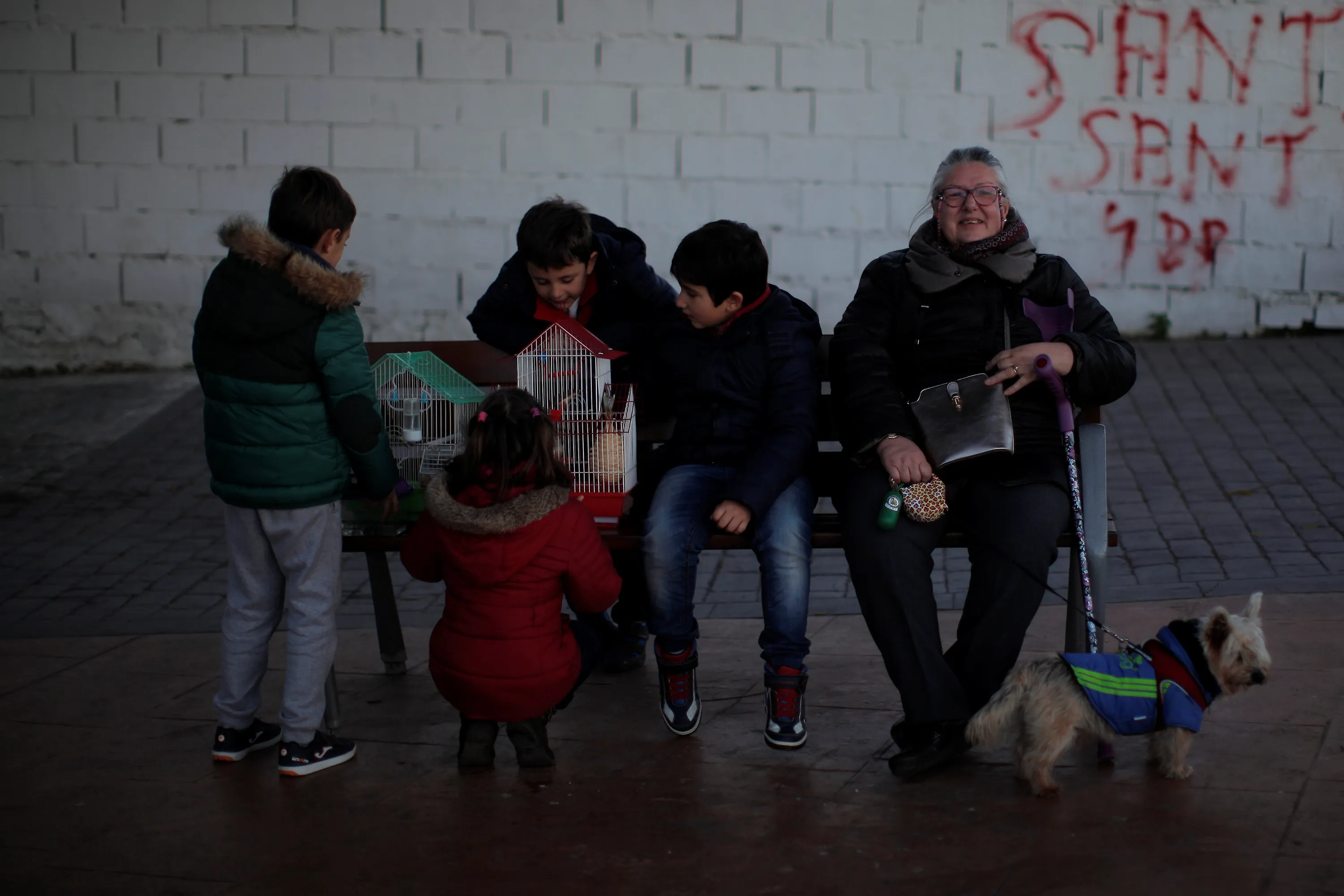 Children watch birds next to a woman and her dog, after a priest blessed them, outside San Anton Church in the neighborhood of Churriana, in Malaga, Spain, January 17, 2017. (Photo by Jon Nazca/Reuters)