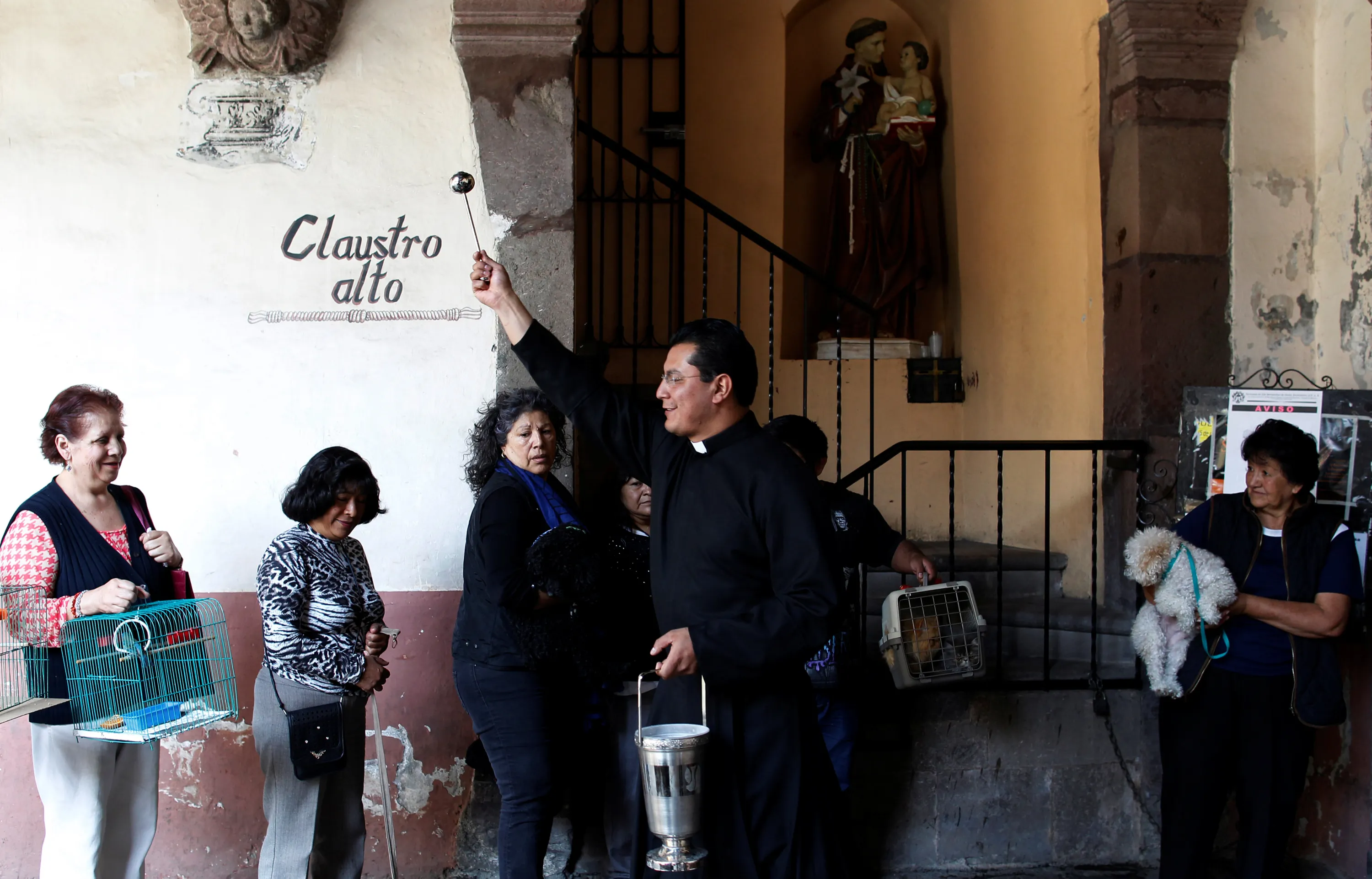 People with pets receive blessings from a priest on the day of Saint Anthony, the patron saint of domestic animals, in Xochimilco in Mexico City, Mexico January 17, 2017. (Photo by Carlos Jasso/Reuters)