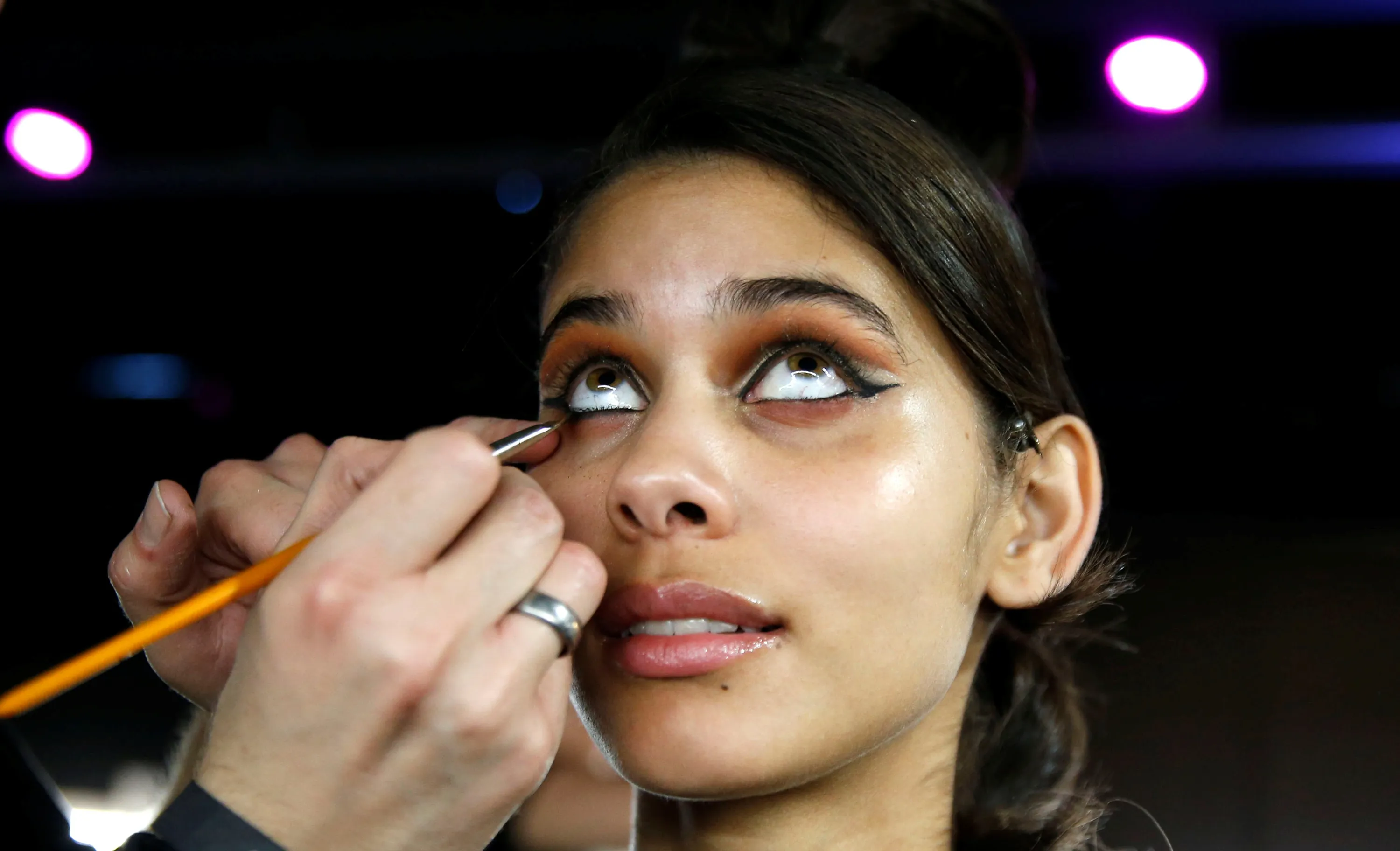 A model has her makeup done for the Maybelline New York show ahead of the Berlin Fashion Week Autumn/Winter 2017 in Berlin, Germany, January 16, 2017. (Photo by Fabrizio Bensch/Reuters)