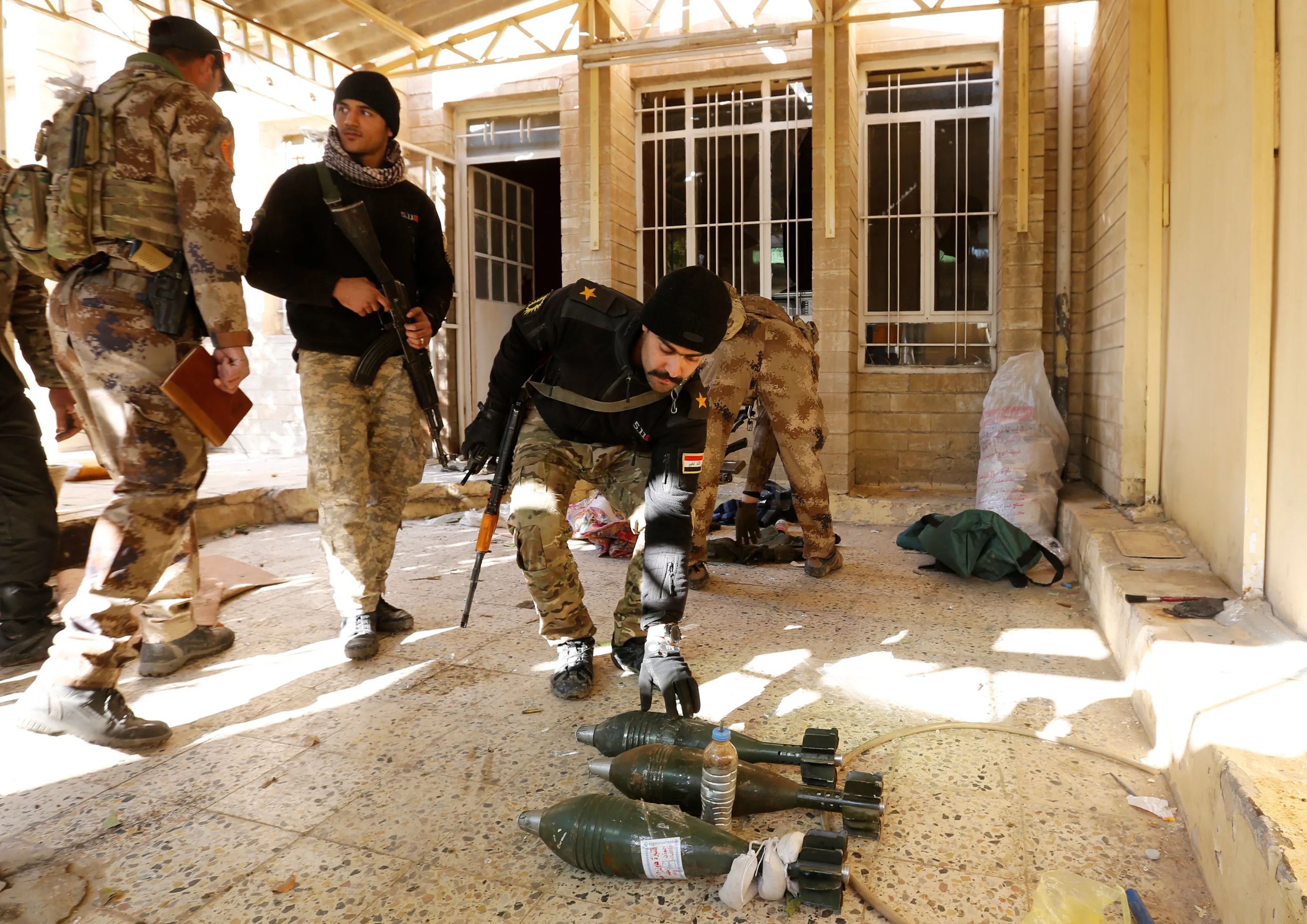 Iraqi Special Operations Forces (ISOF) inspect weapons of lslamic State militants during an operation to clear the al-Andalus district of Islamic State militants, in Mosul, Iraq, January 16, 2017. (Photo by Muhammad Hamed/Reuters)