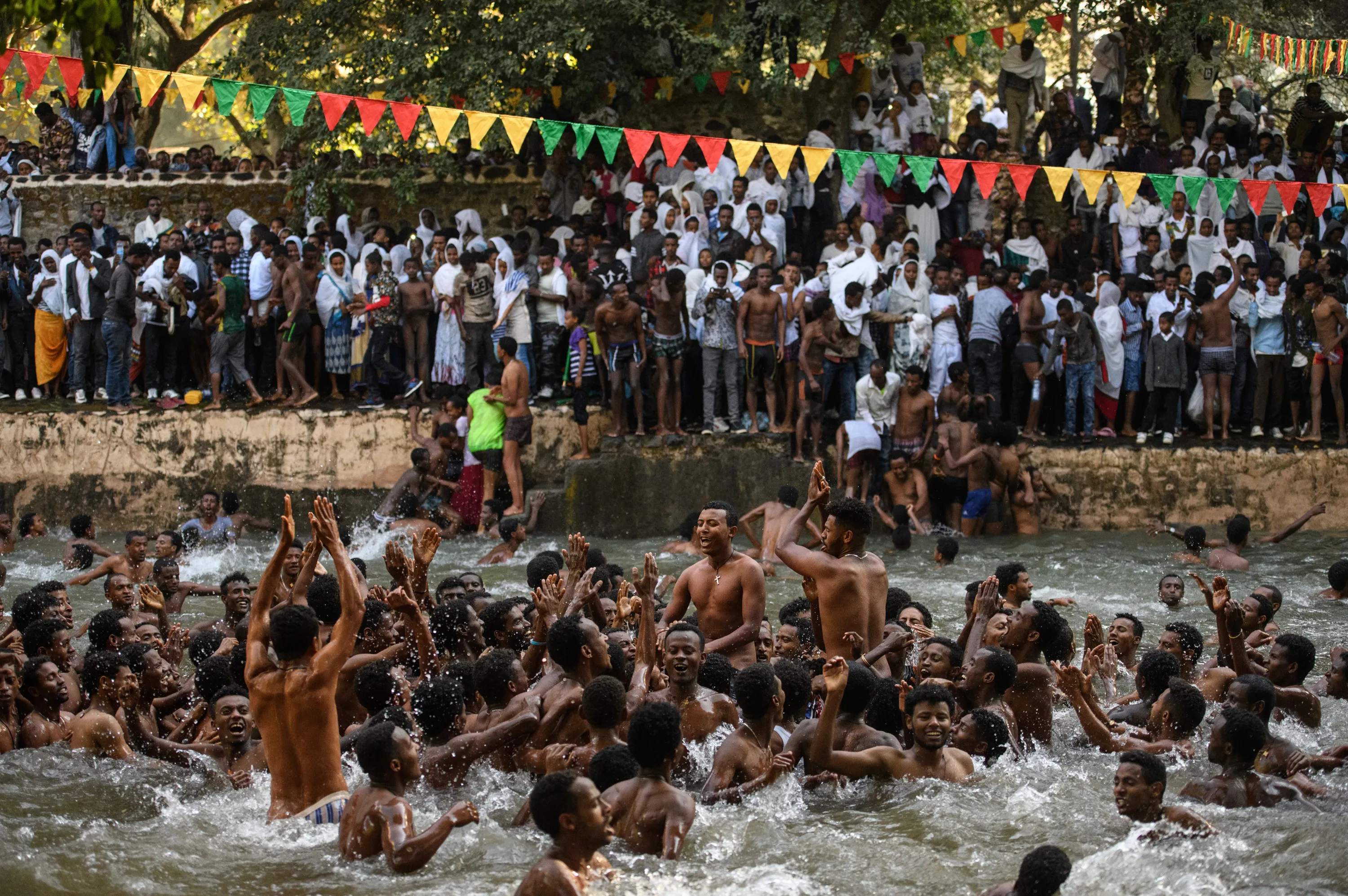 Ethiopian Orthodox worshippers swim in Fasilides Bath during the annual Timkat epiphany celebration on January 19, 2017 in Gondar, Ethiopia. (Photo by Carl Court/Getty Images)