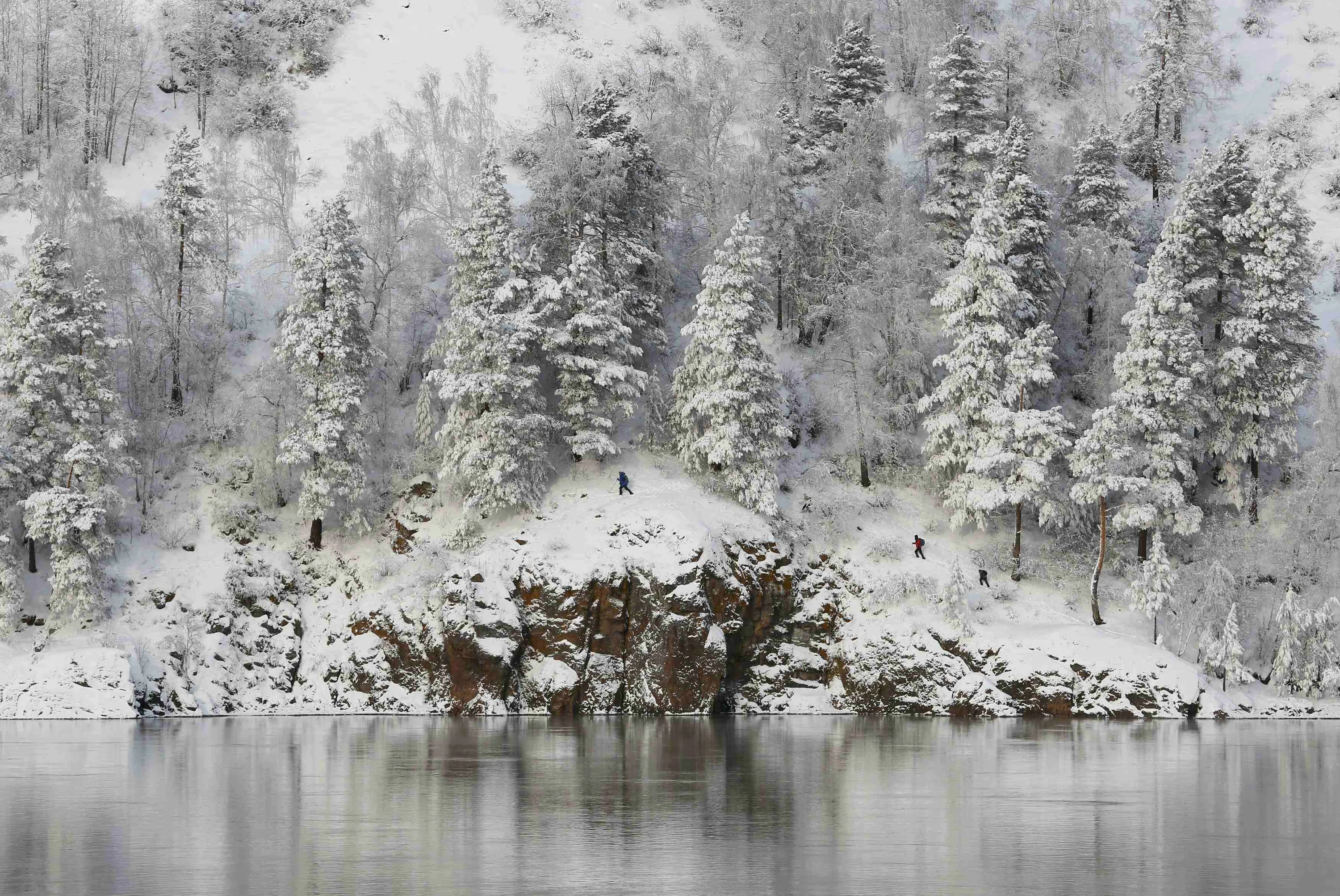 People walk along a bank of the Yenisei river in Siberian taiga area outside Krasnoyarsk, Russia January 15, 2017. (Photo by Ilya Naymushin/Reuters)