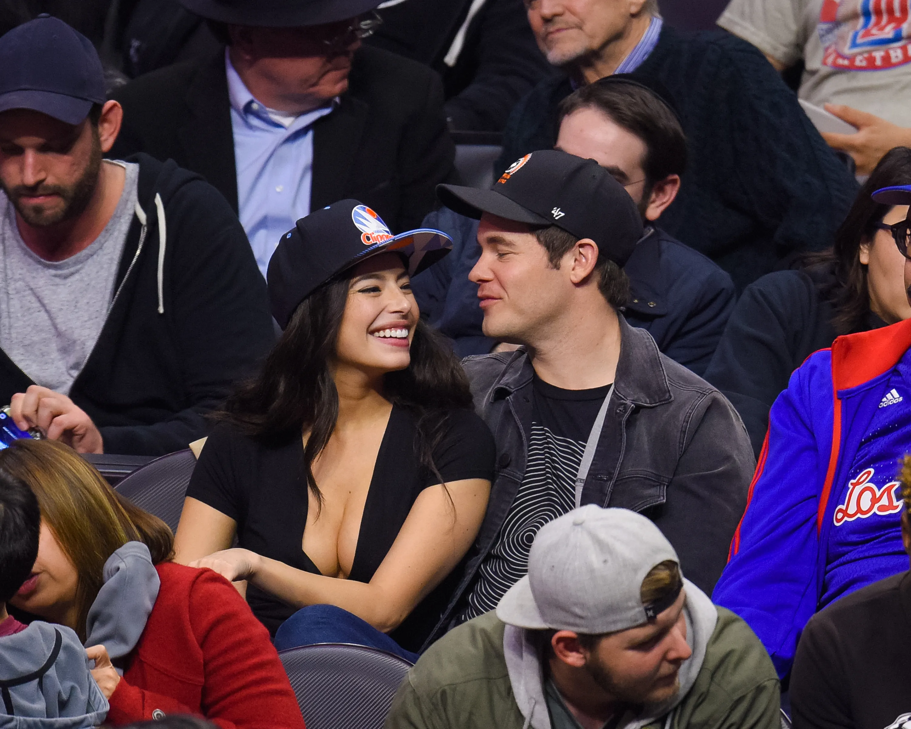 Adam DeVine and Chloe Bridges attend a basketball game between the Oklahoma City Thunder and the Los Angeles Clippers at Staples Center on January 16, 2017 in Los Angeles, California. (Photo by Noel Vasquez/Getty Images)