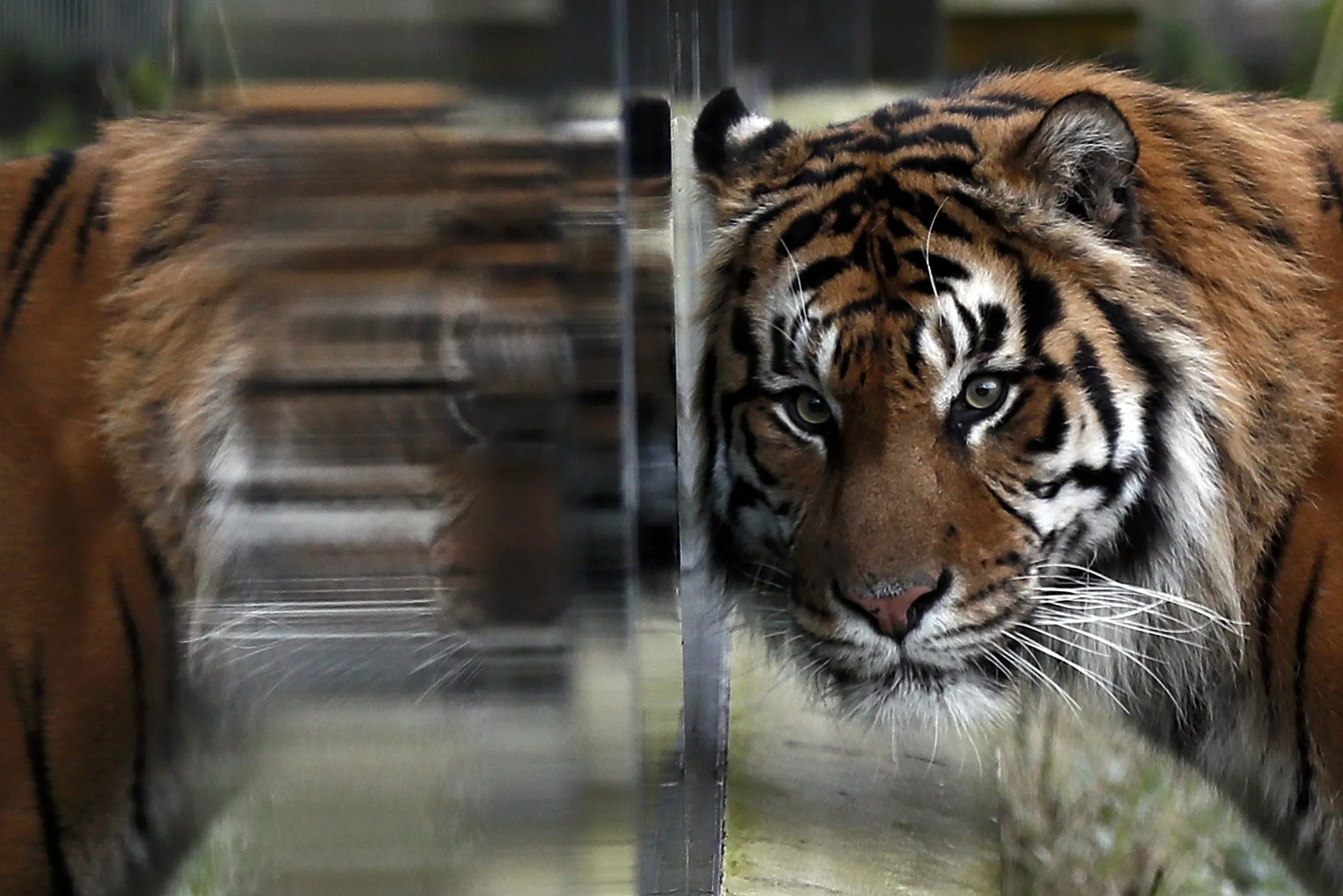 Sumatran tiger Jae Jae is reflected in glass during the annual stocktake at London Zoo in London, Britain January 3, 2017. (Photo by Stefan Wermuth/Reuters)
