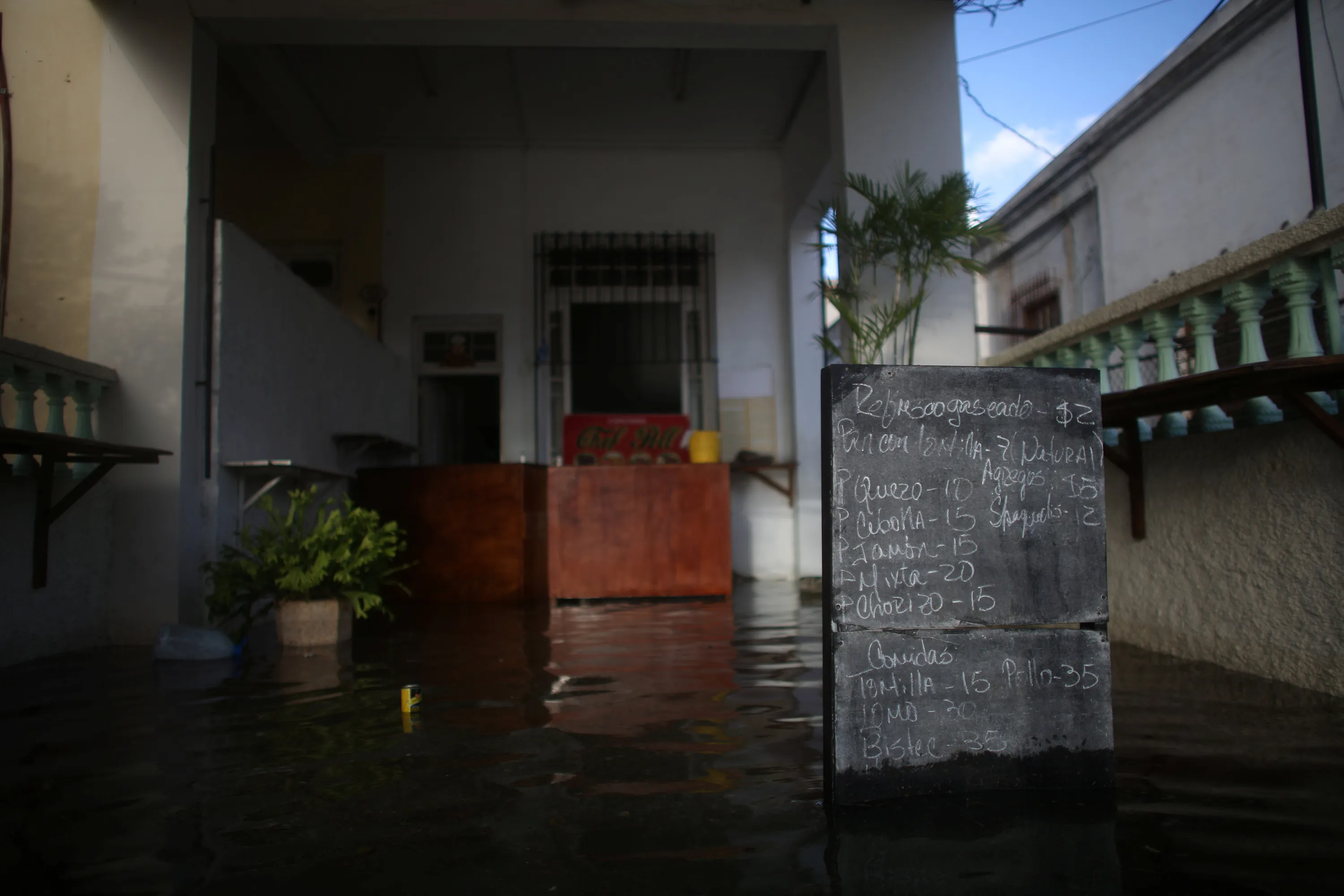 The menu of a restaurant is seen during a flood in Havana, Cuba, January 23, 2017. (Photo by Alexandre Meneghini/Reuters)