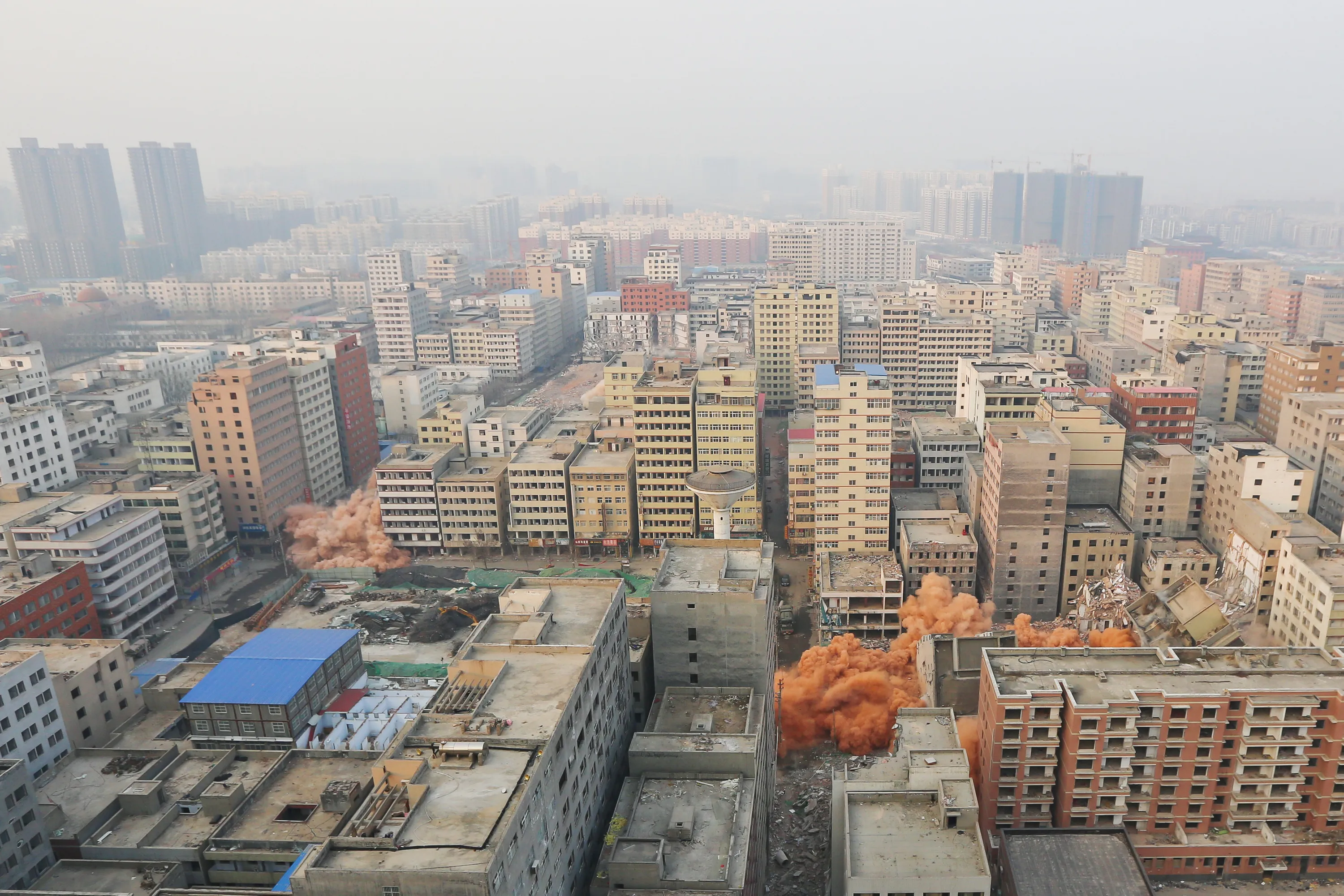 Smokes rising as buildings crumble during controlled demolition of an urban village in Zhengzhou, Henan province, China, January 23, 2017. (Photo by Reuters/Stringer)