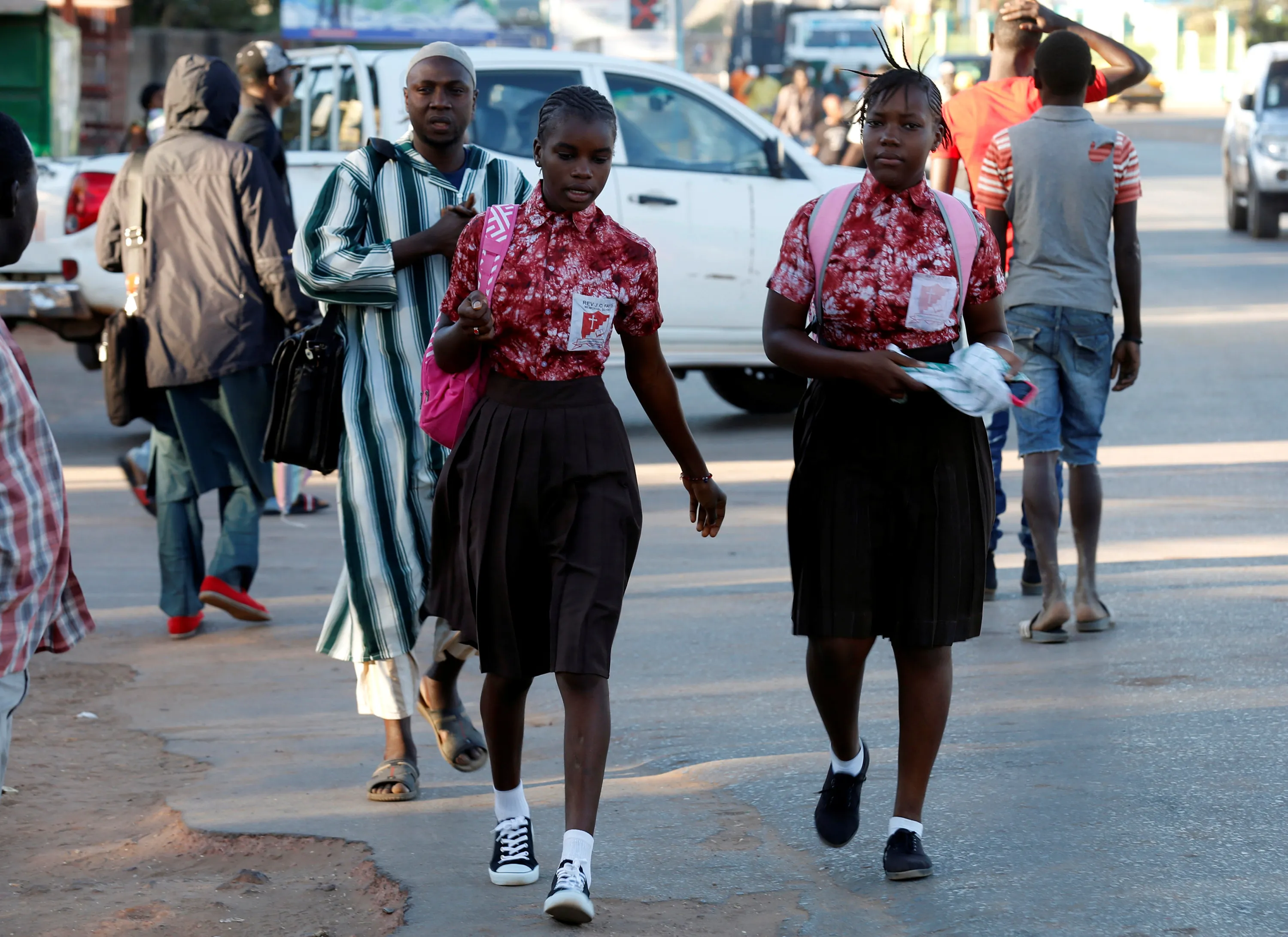 Two school girls walk at Kairaba avenue in Banjul, Gambia January 24, 2017. (Photo by Thierry Gouegnon/Reuters)