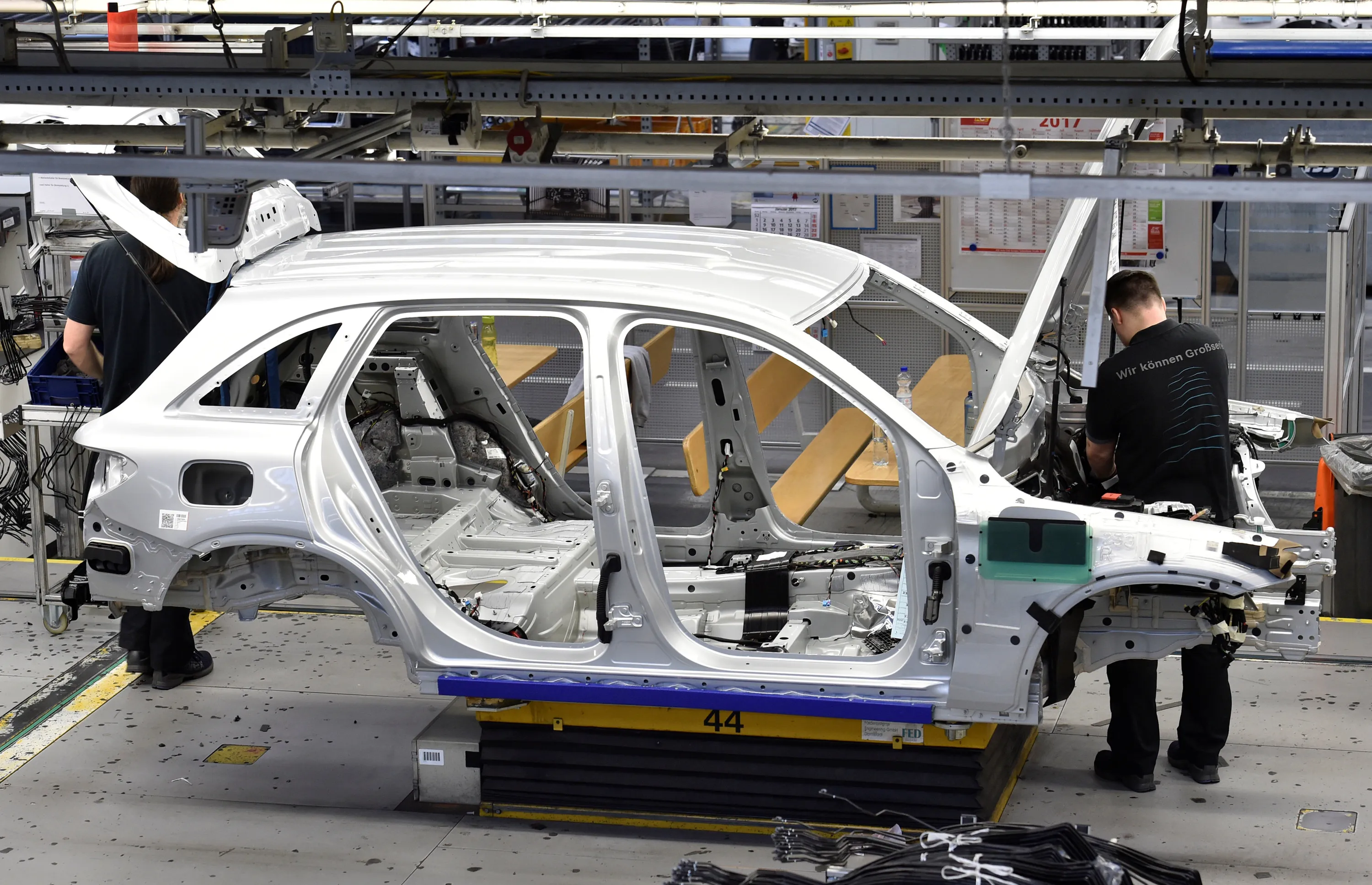 A Mercedes-Benz car is pictured in a production line at the plant of German carmaker Mercedes-Benz in Bremen, Germany January 24, 2017. (Photo by Fabian Bimmer/Reuters)