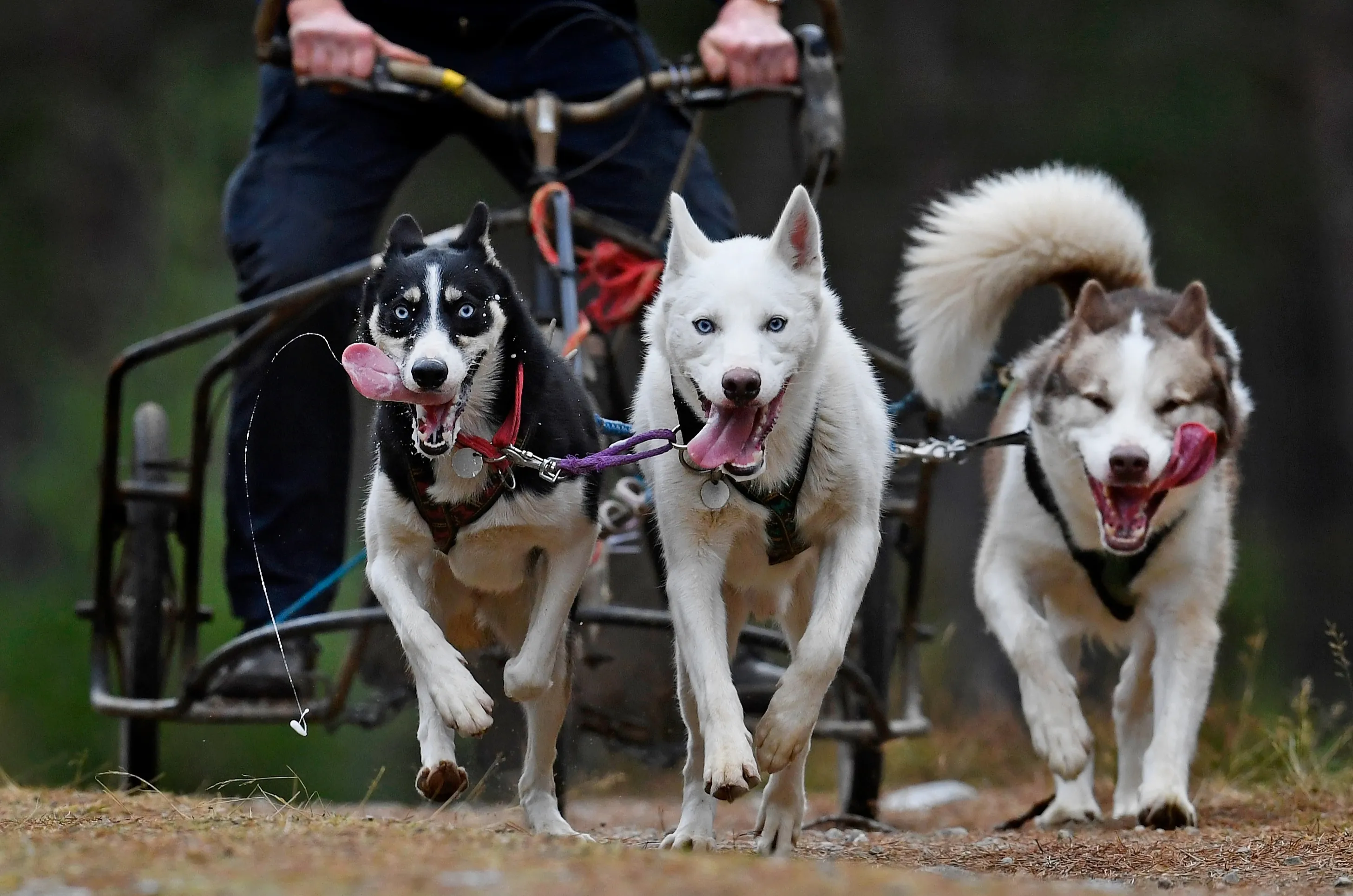 Mushers and their huskies practice at a forest course ahead of the Aviemore Sled Dog Rally on January 24, 2016 in Feshiebridge, Scotland. (Photo by Jeff J. Mitchell/Getty Images)
