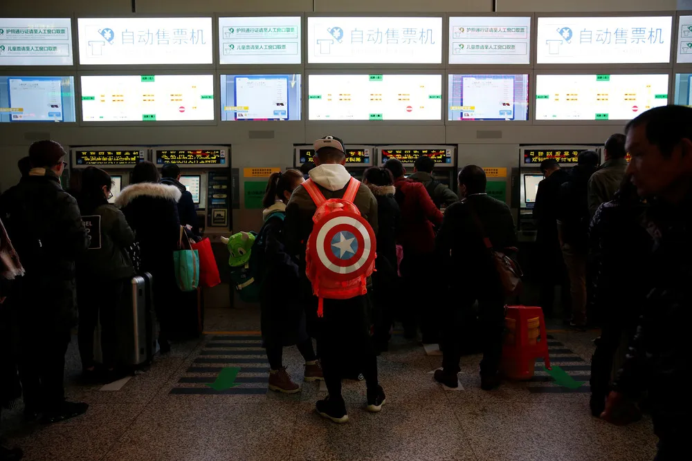 Passengers wait to buy train ticket at Shanghai's Hongqiao Railway Station as hundreds of millions of Chinese travel home for Lunar New Year in Beijing and Shanghai, in Shanghai, China January 25, 2017. (Photo by Aly Song/Reuters)