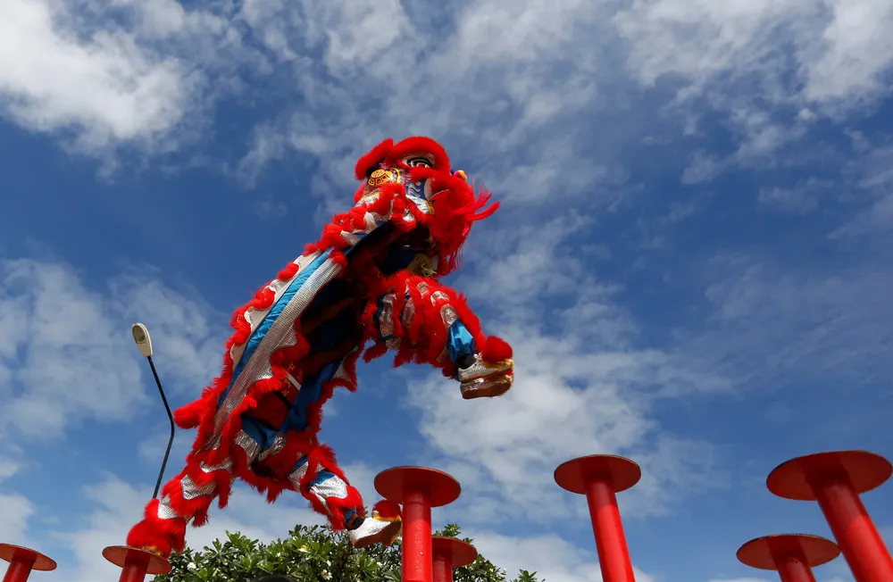 Men perform a lion dance ahead of the Chinese Lunar New Year in Phnom Penh, Cambodia January 26, 2017. (Photo by Samrang Pring/Reuters)